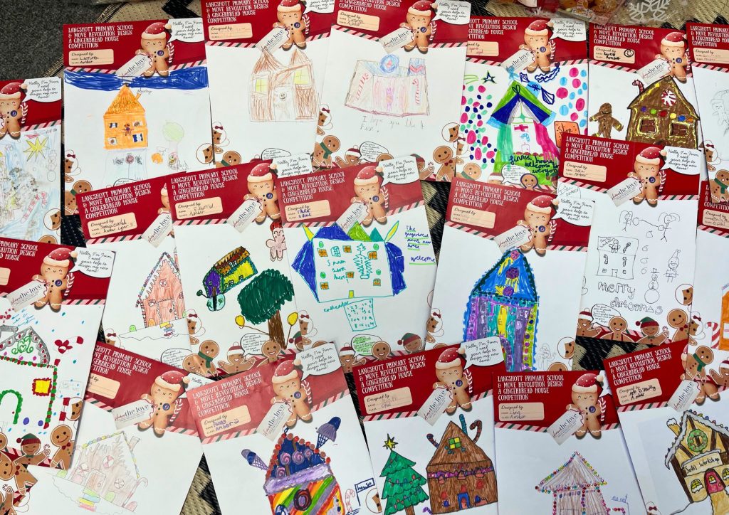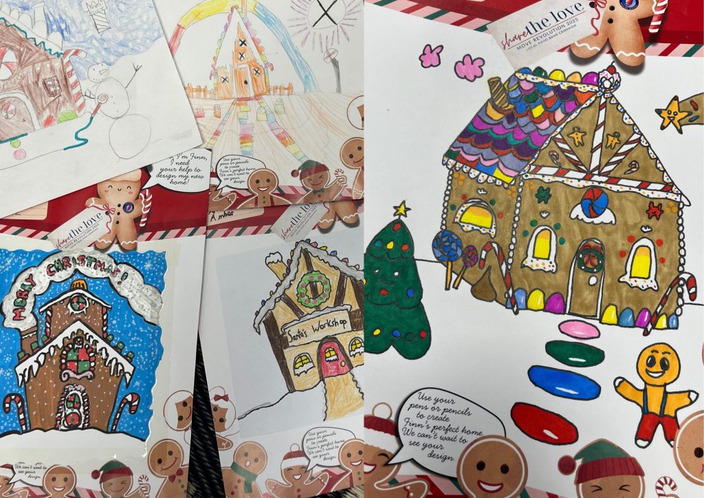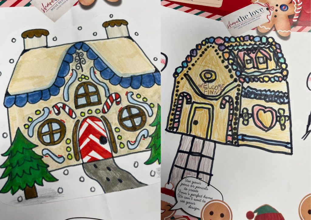 Standing outside were Harvey and Sky from Move Revolution — wrapped in scarves, smiling warmly, and holding a neat stack of drawings.