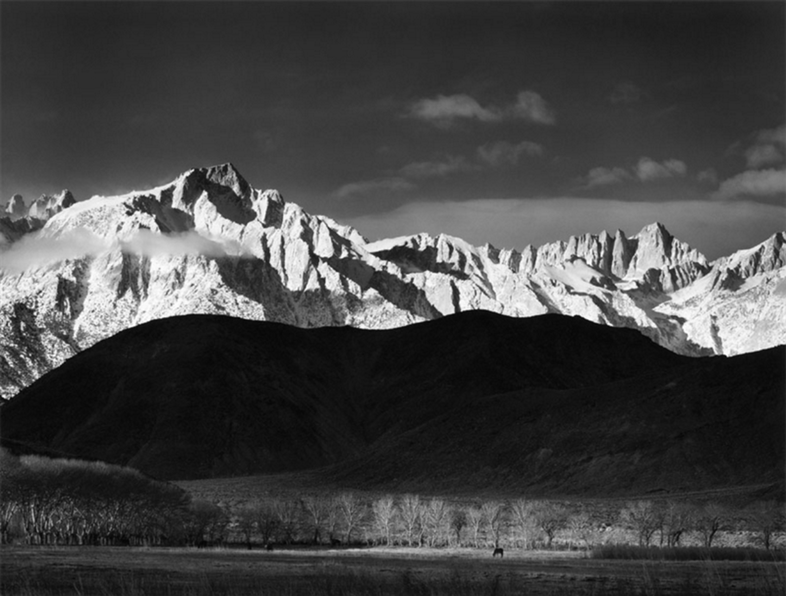 Again I could easily change my mind, especially with Ansel’s work. It’s easy to get caught up with some of the amazing images that are taken every day around the world and shared on social media. Standing back to appreciate the effort involved in a capture is worth a moment if your time. In this case. Ansel Adams has an image called Winter Sunrise, taken in Sierra Nevada. At first it’s a simple landscape shot, but it’s so striking with the intensely detailed snow caps on the mountains to the still-in-morning-shadow foreground peaks cutting straight through them. With the cloud cover, dark sky and grazing cattle on the bottom of the frame there is multiple horizontal layers of this image. Look at the way there’s a stream of light hitting the area where that cow is grazing! Ansel had a habit of getting up in the middle of the night to reach these places and staying there all morning or evening to wait for the right shot. If he didn’t get it one day, he’d check the weather and return the next. Now imagine this image printed by hand in a dark room on paper 4 metres wide. The monumental effort at the time is verging on overwhelming to somebody such as myself who’s more akin to shooting hundreds of images a day and sitting infront of a computer to edit them for an afternoon.