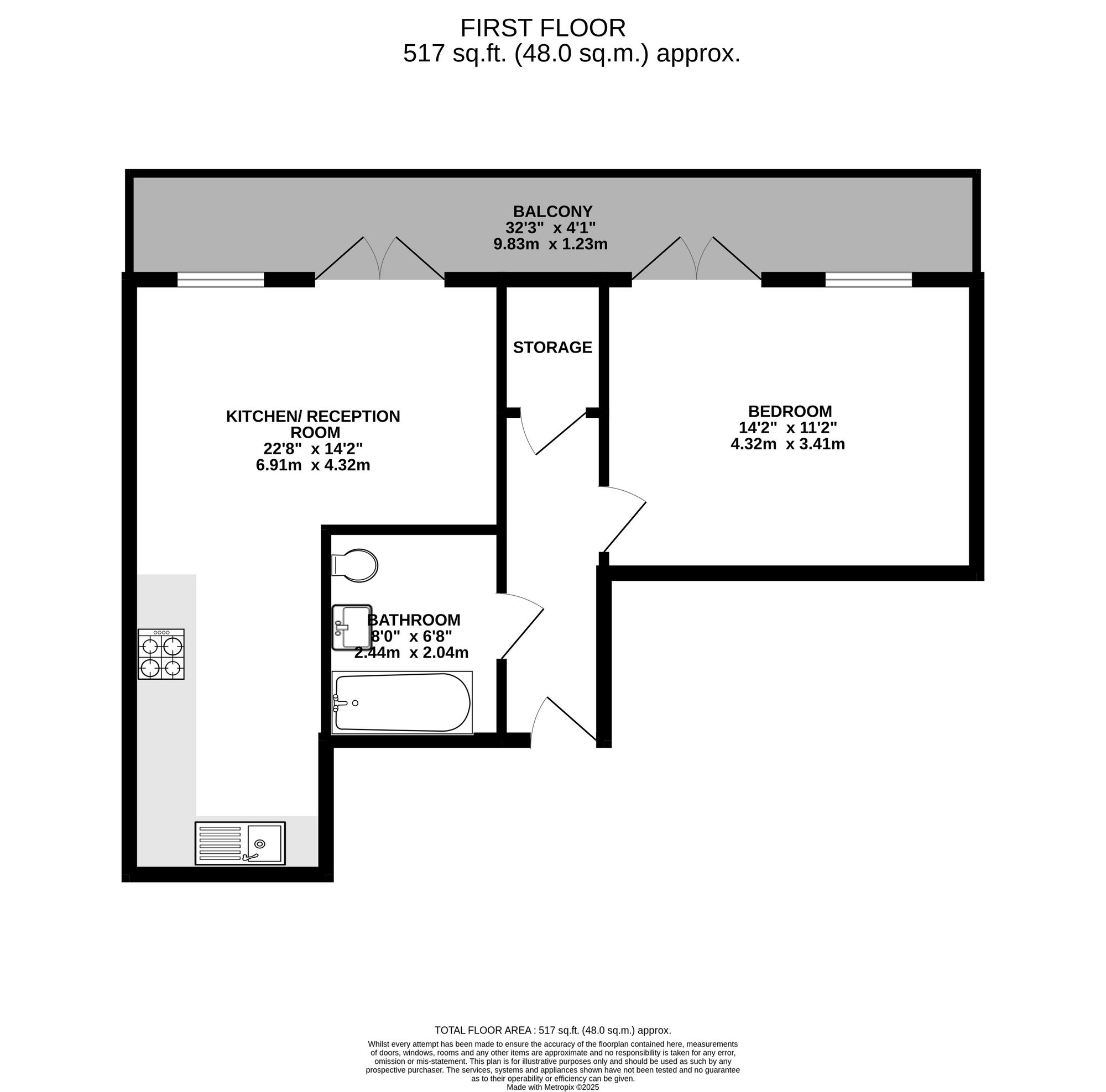The generous double bedroom offers a serene and private space to unwind, while the beautifully appointed bathroom features both a bath and a separate shower enclosure. Finished in crisp white with high-quality chrome fittings, the bathroom also includes a vanity unit with storage, a wall-mounted mirror with integrated lighting, and easy-to-maintain surfaces.