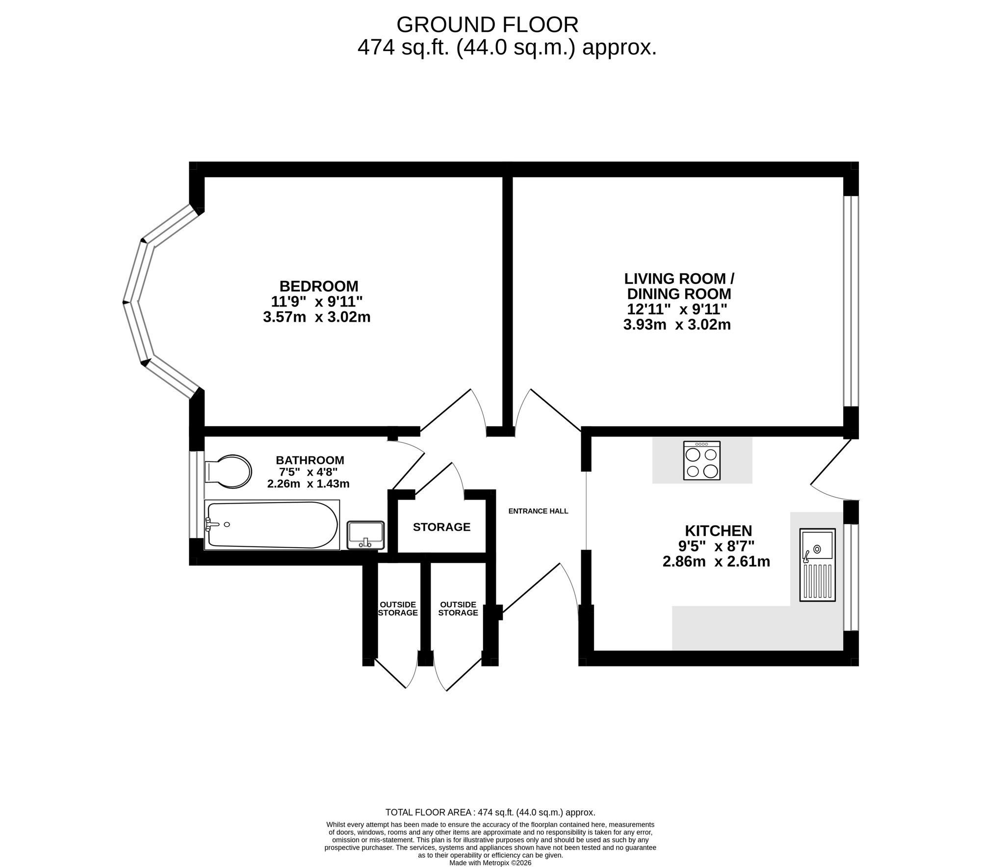 The kitchen offers ample storage and direct access to the private garden, ideal for outdoor dining and enjoying the warmer months. The property further benefits from a large double bedroom and a well-proportioned bathroom with over head shower in the bath.