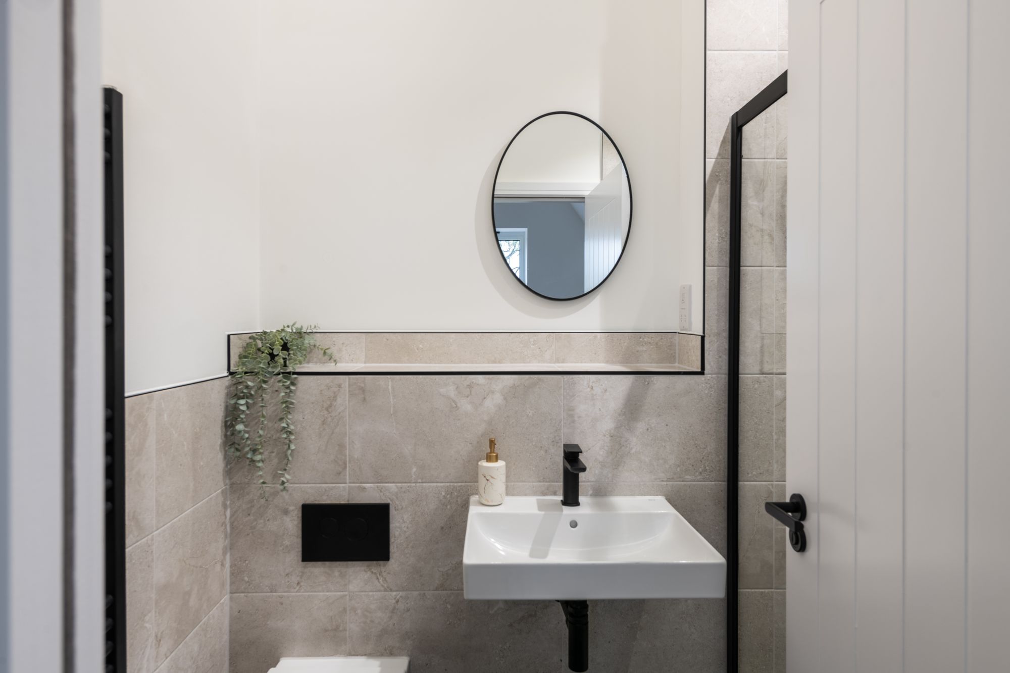 Upon entering, a welcoming hallway guides you through to all areas of the home. Off the hallway is a convenient WC for guests. The meticulously designed Norden kitchen showcases a refined ‘grey linen’ finish with bronze accents, paired with ‘antique bronze’ countertops, upstand, and splashback. To elevate both style and functionality, a range of integrated Hotpoint appliances is included: an oven, induction hob, fridge/freezer, dishwasher, washing machine, and canopy extractor. The ground floor is completed by a spacious living room at the front of the property. Upstairs on the first and second floors, you’ll find four bedrooms, two with en-suite shower rooms, along with an additional family bathroom. The impressive Norden bathrooms boast white sanitaryware, elegantly combined with matte black fixtures and Boydens tiles. The stylish interplay between white and matte black elements creates a contemporary, sophisticated look that is both timeless and striking.