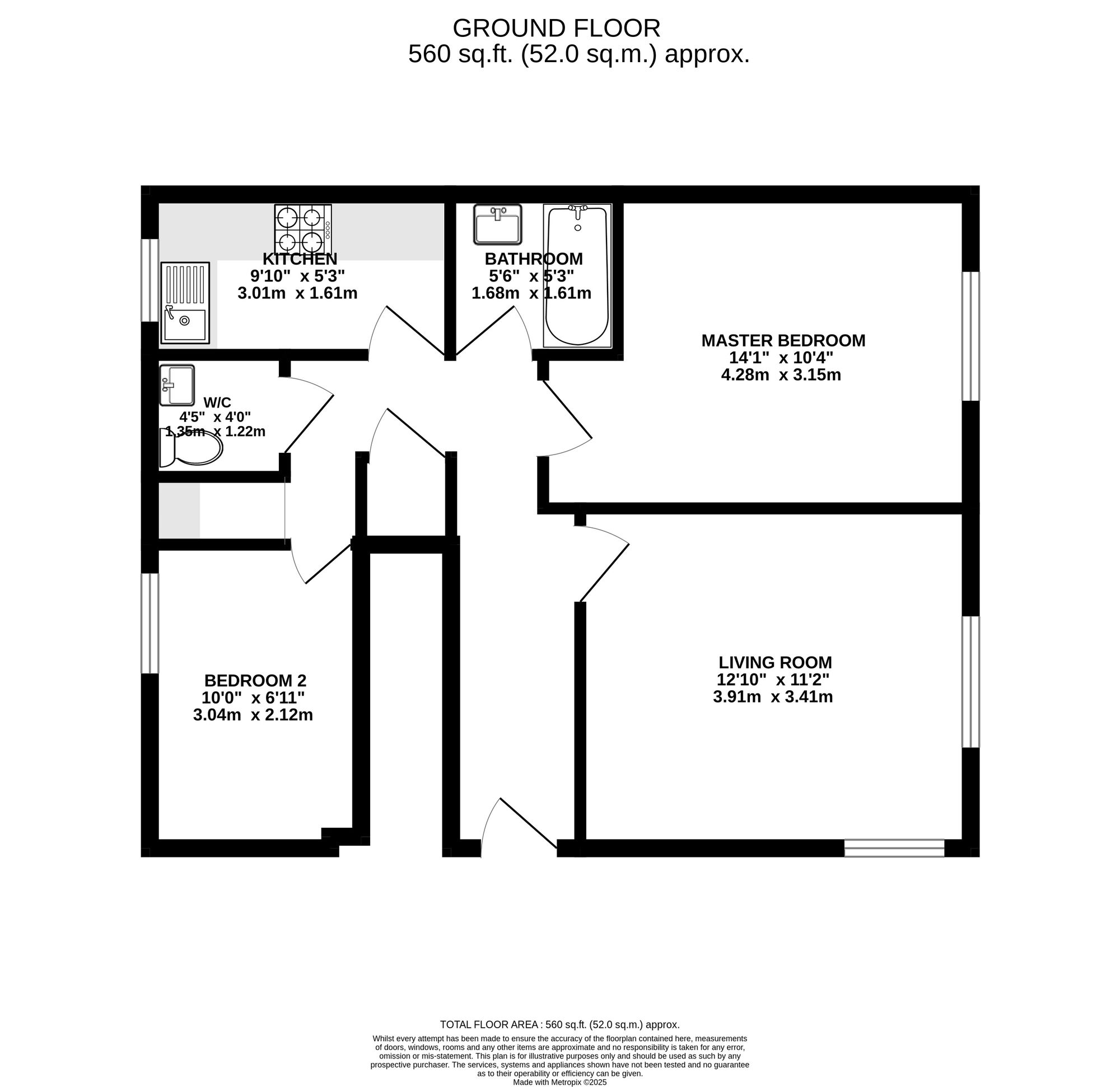 The accommodation briefly comprises, private front door, L-shape hall with storage, contemporary family bathroom, separate kitchen with fitted appliances, living room and lastly two spacious double bedrooms. The property is situated on the ground floor and would be the ideal home for a young couple or someone looking to downsize.
