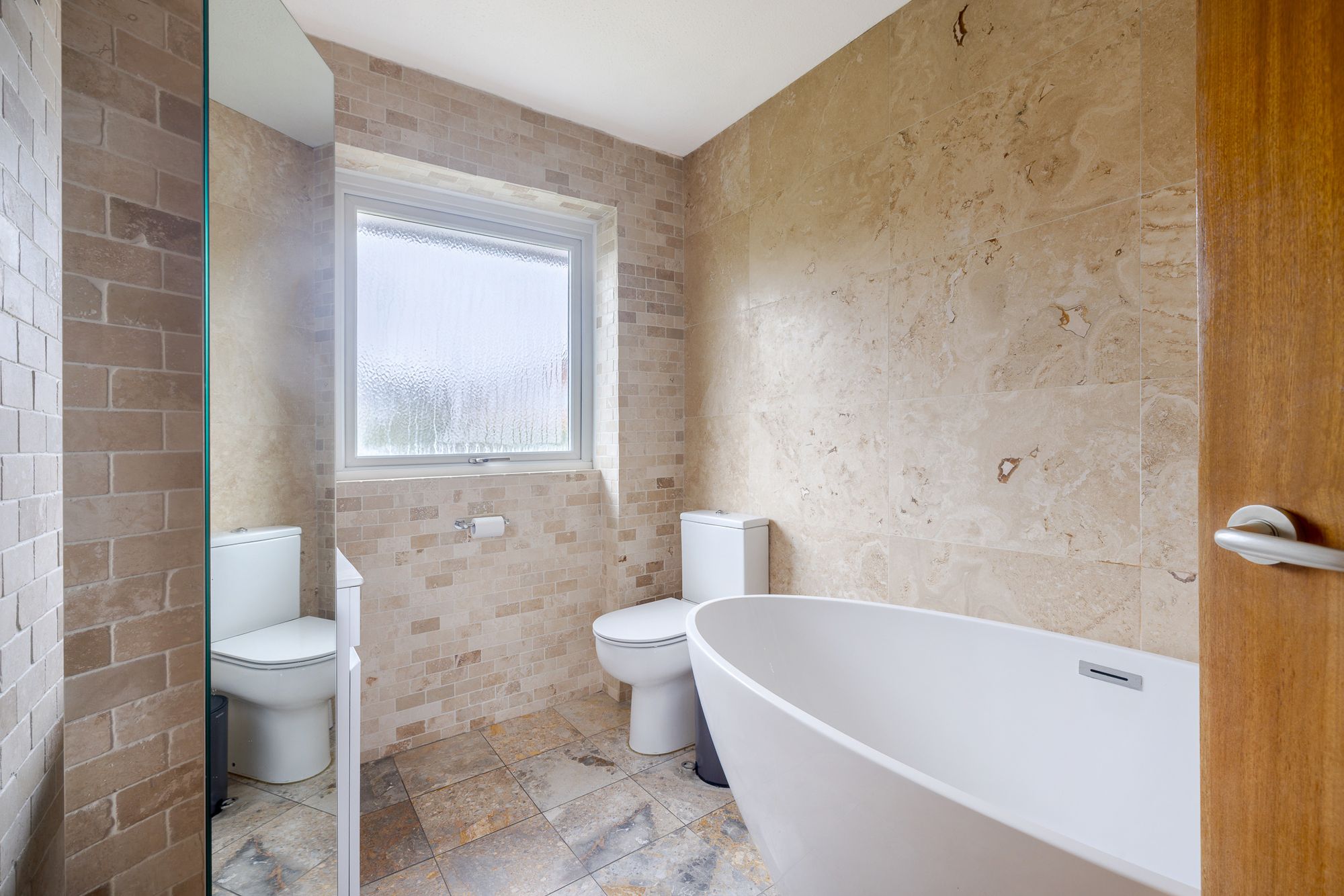 Occupying the upper floor are two further well proportioned bedrooms, both benefitting from built in wardrobes and excellent storage. The family bathroom is beautifully appointed and features a striking freestanding bath.