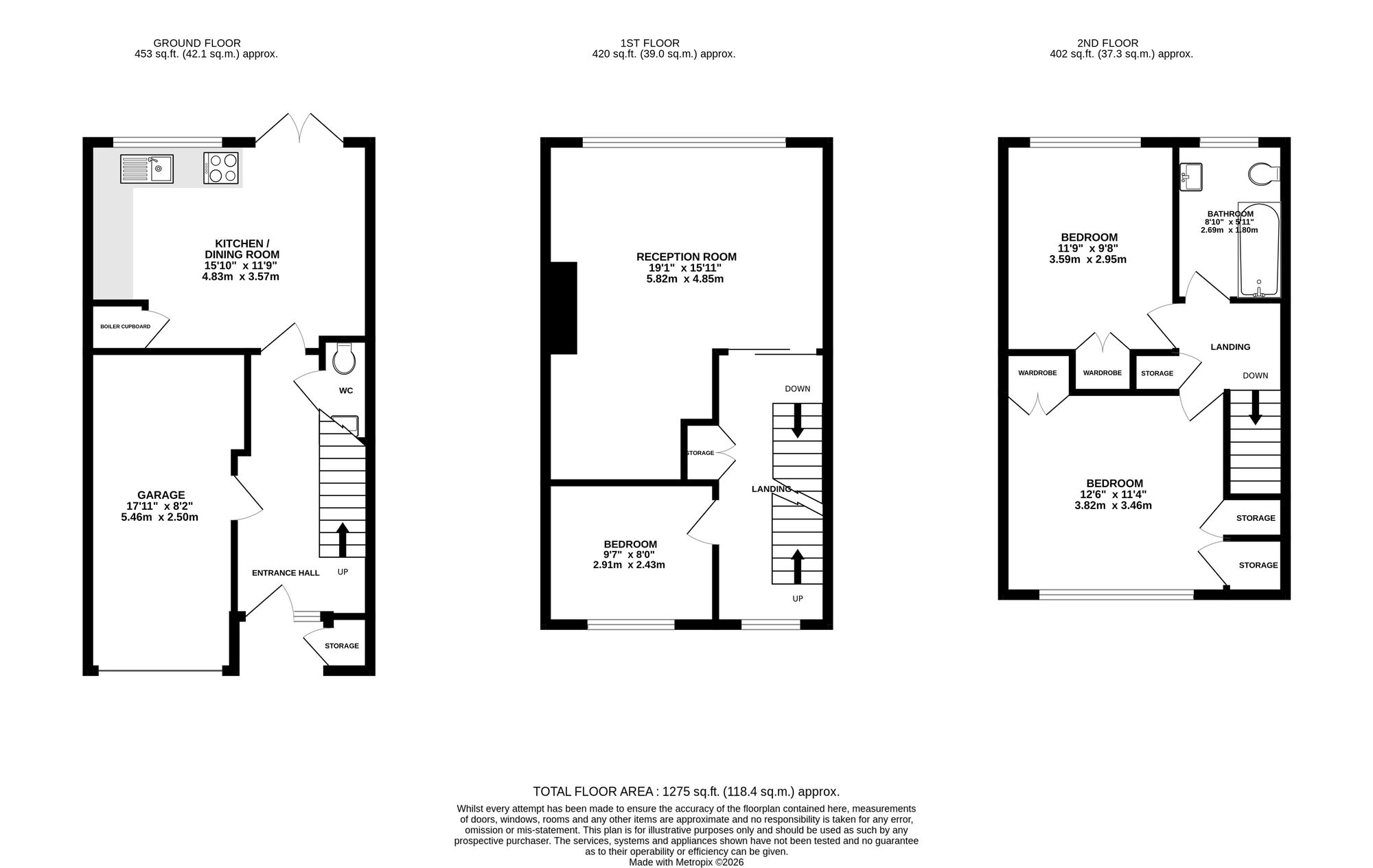 The first floor hosts a spacious living room featuring a charming fireplace, providing a cosy yet elegant setting. There is also ample room for a dedicated work from home area. The third bedroom is located on this floor, along with additional storage on the landing.