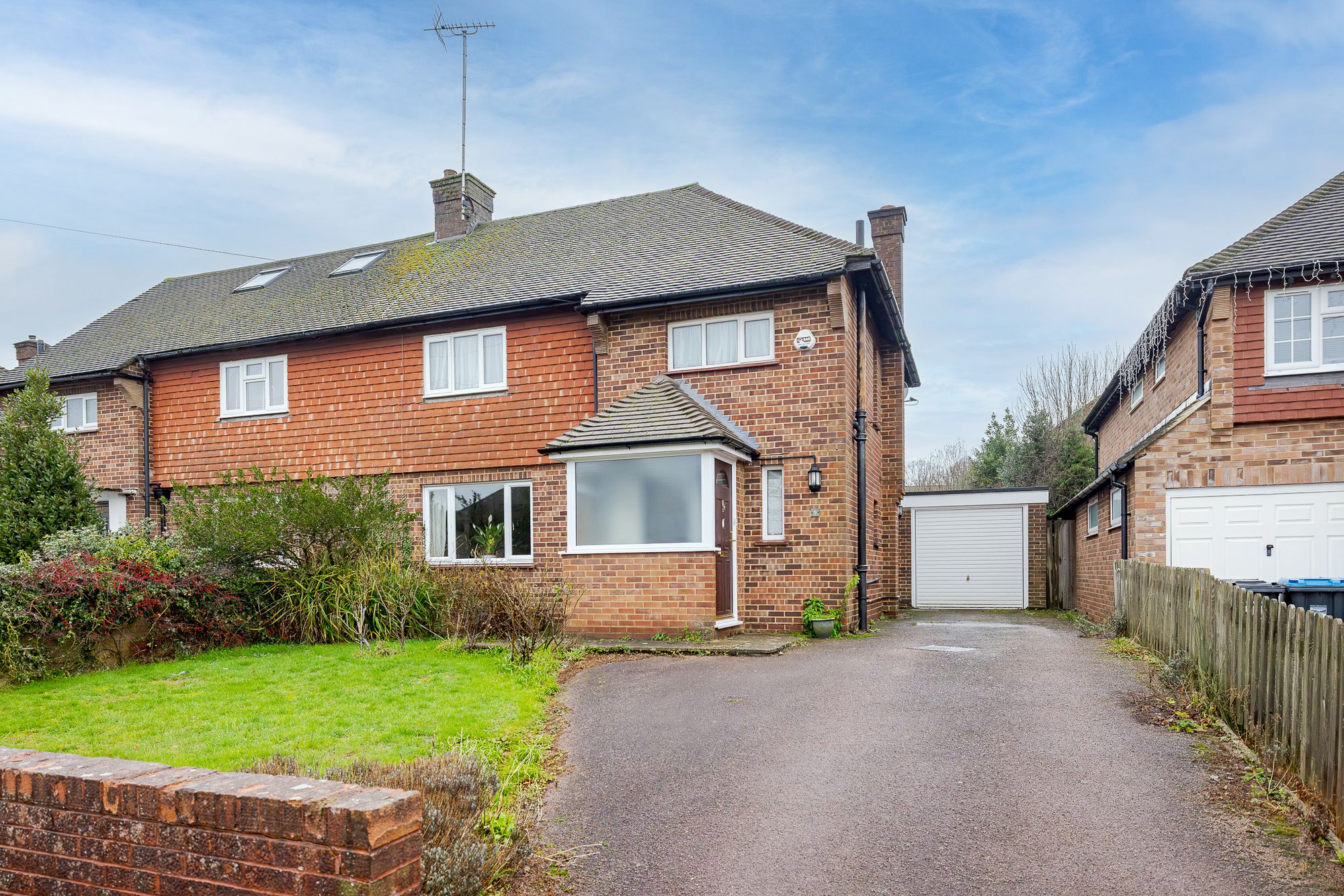 Three-bed semi-detached home near Oxted centre and station. Features open-plan living, practical kitchen, garage, garden, outbuilding, potential to extend (STPP), and no onward chain.