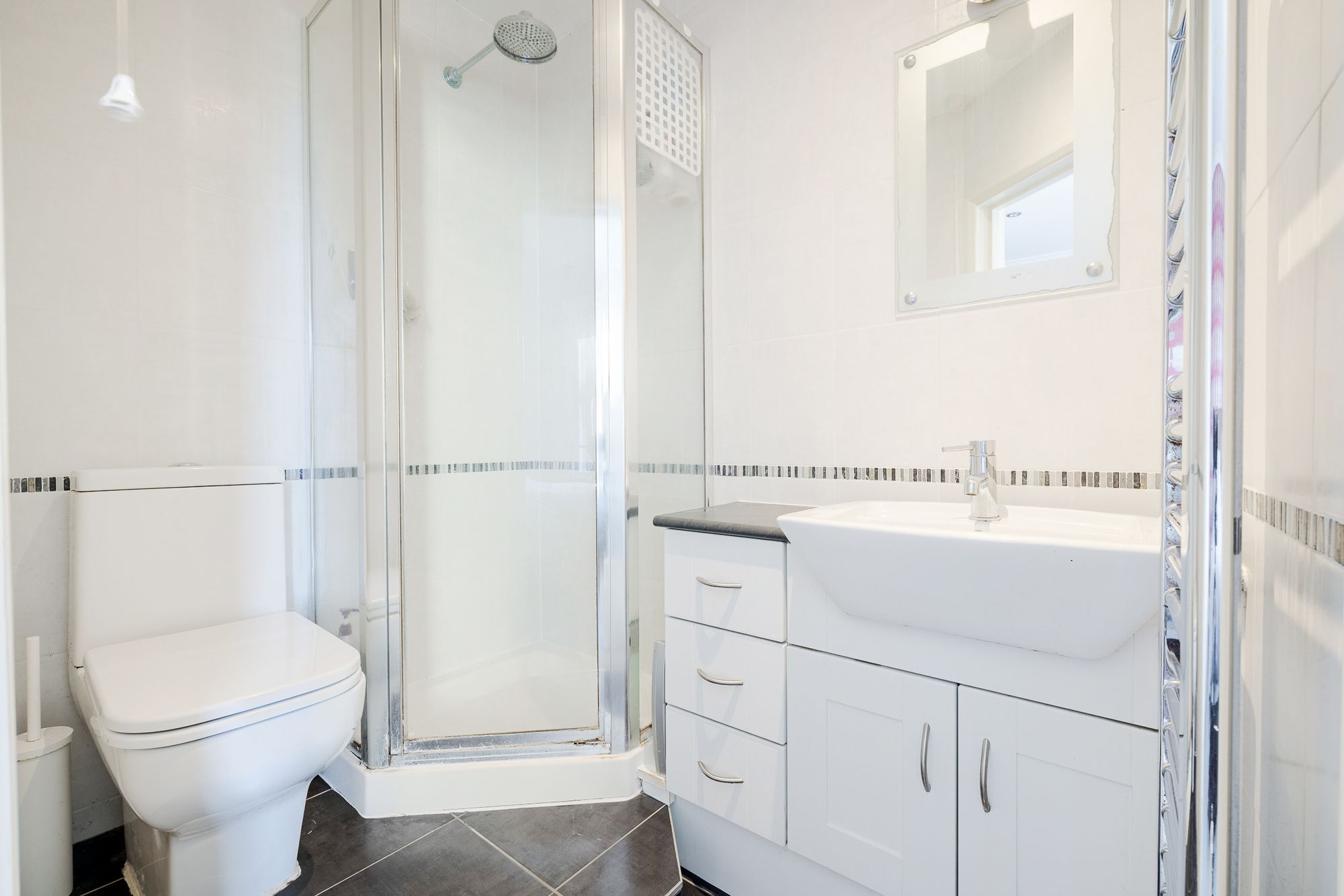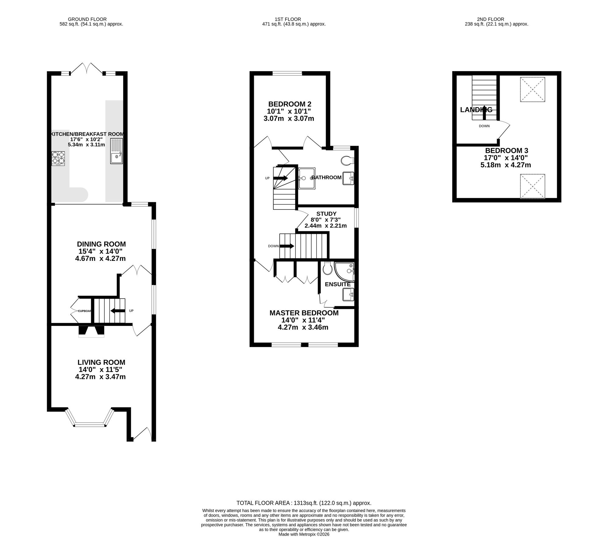 On the first floor, there are two generous double bedrooms, with the principal bedroom benefiting from built in wardrobes and a contemporary ensuite shower room. A family bathroom serves this floor, along with a separate study, perfect for home working or as a nursery.