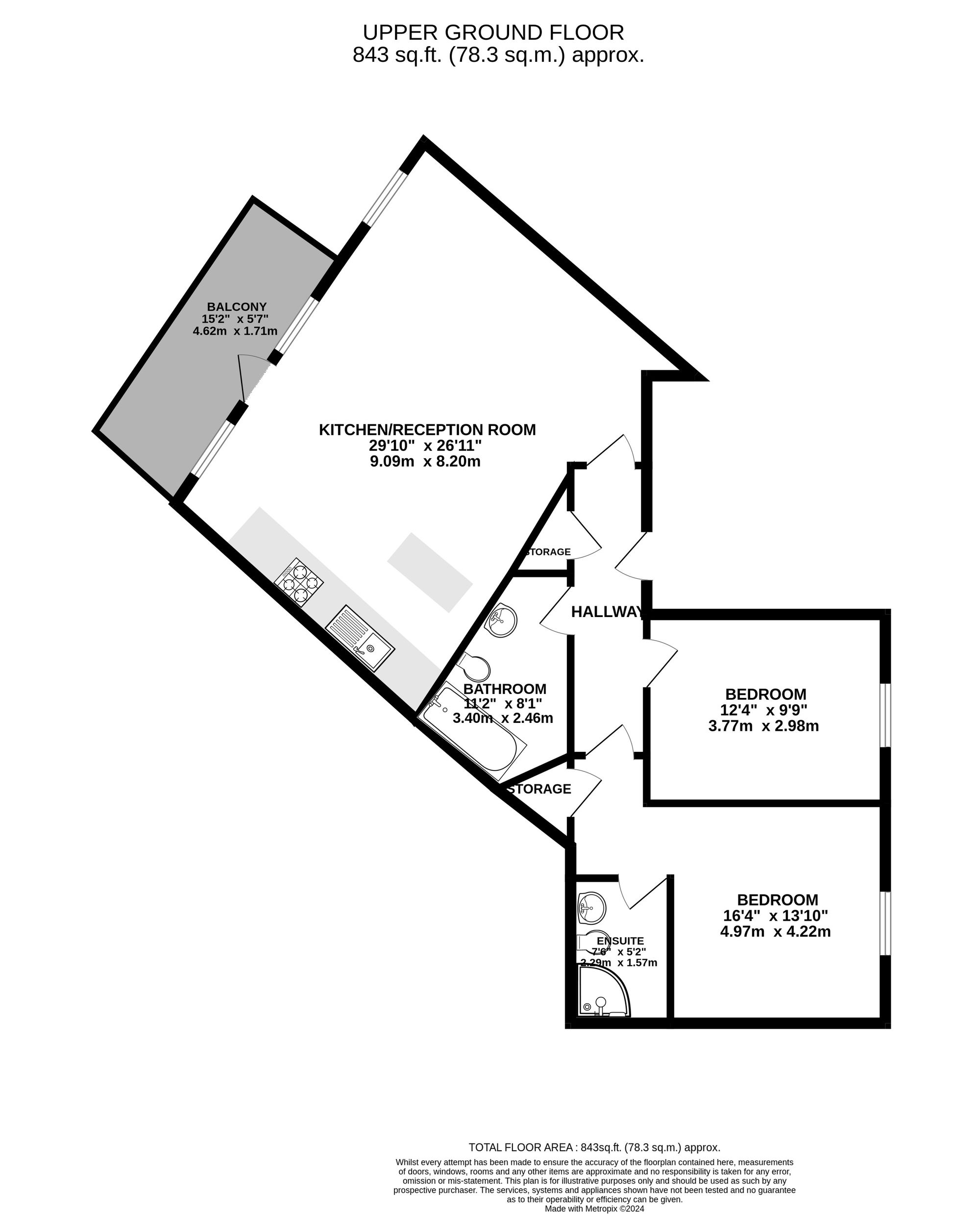 The accommodation briefly comprises, entrance hall with storage, double bedroom, family bathroom , master bedroom with en-suite shower room and space for wardrobes and lastly, a large open-plan, kitchen/reception room with feature island and doors leading to a private balcony. The room itself is a great space and perfect for entertaining.