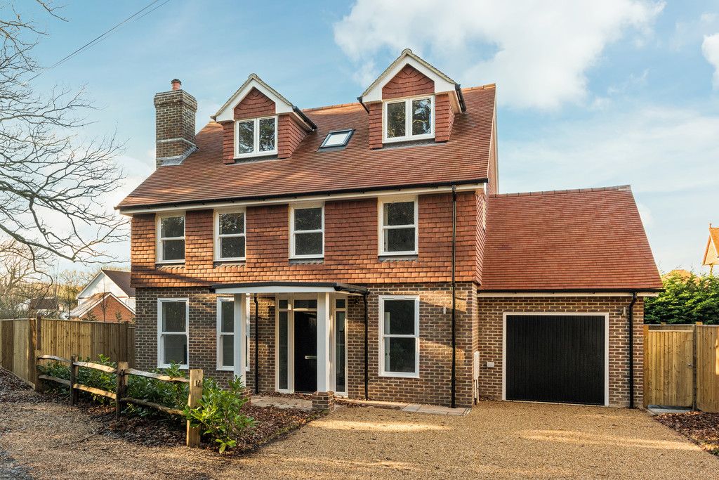 Guide Price £700,000 – £725,000. A substantial brand new five double bedroom, four bathroom family home located in the popular village of Felbridge within easy walking distance of the popular village school. Ready for occupation.