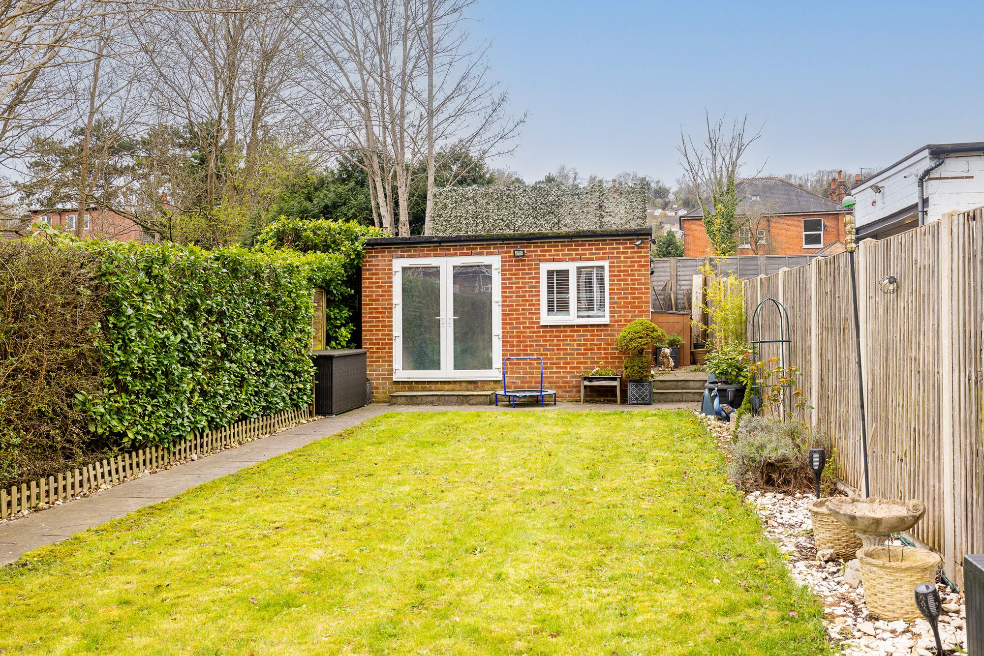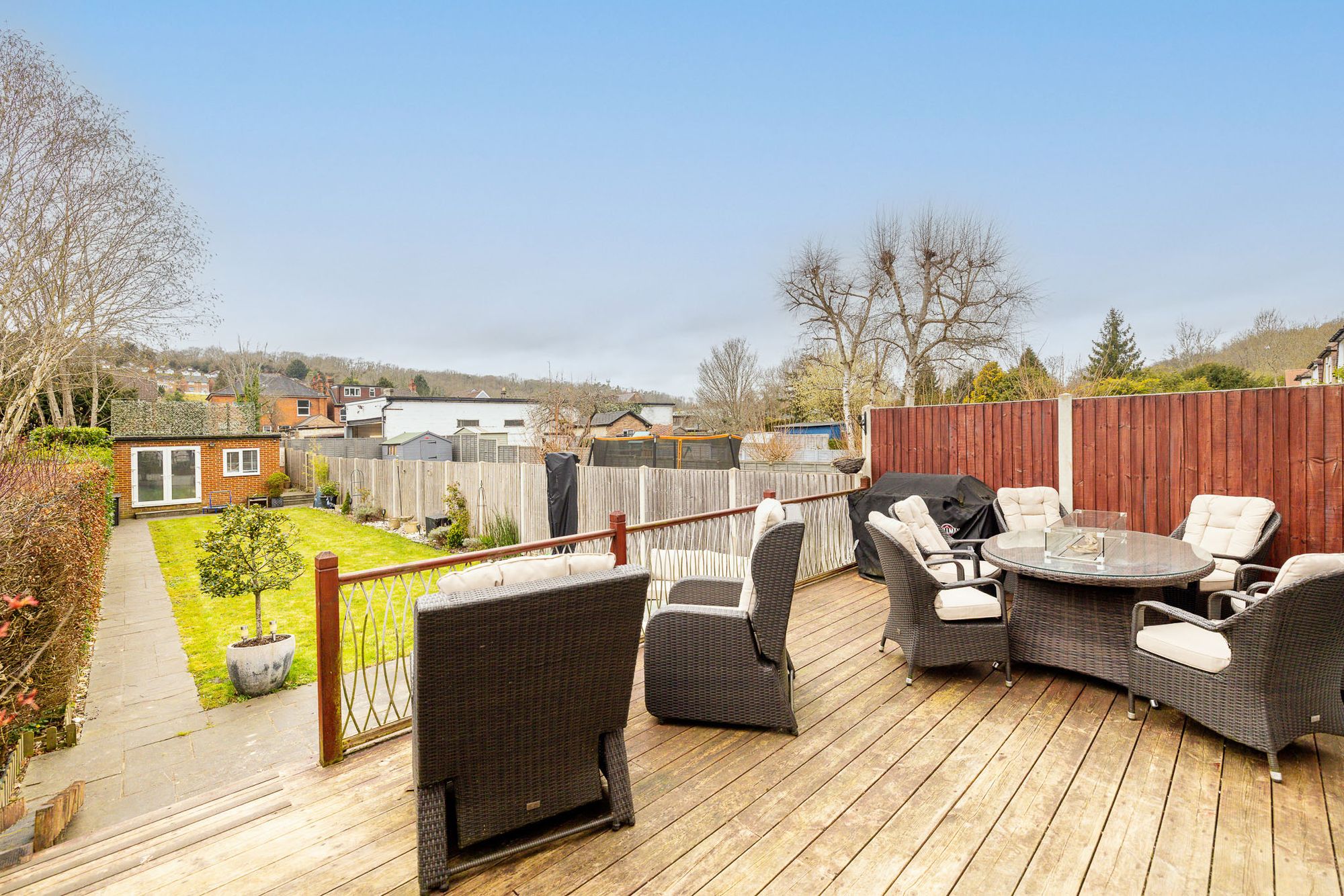 Externally, the property continues to impress. The rear garden features a raised decking area leading down to a patio, with the remainder laid to lawn, ideal for both entertaining and family use. A versatile outhouse, complete with power, is currently divided into a home office and separate storage shed. There is also side access from the front to the rear of the property.