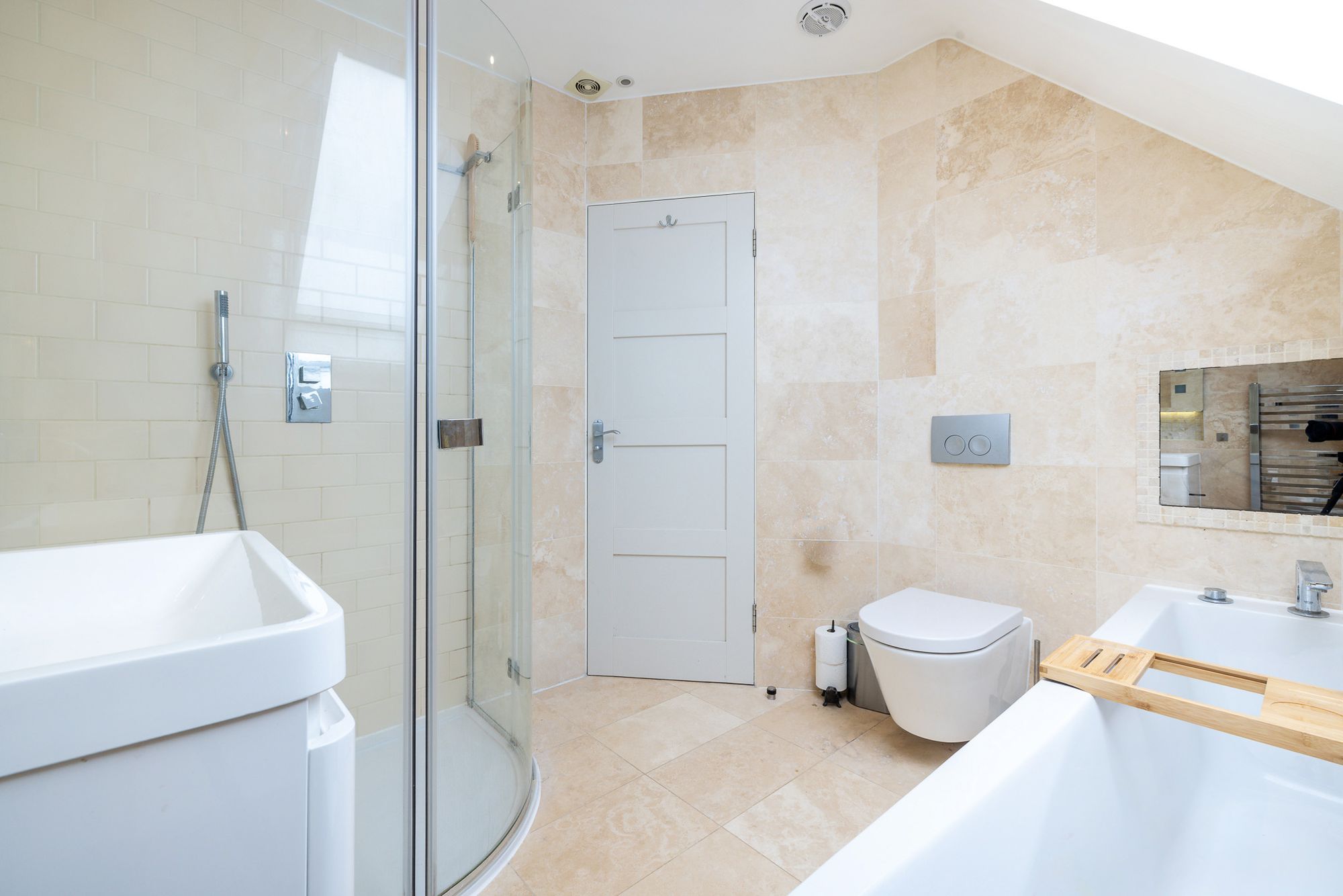 The property boasts three generous double bedrooms, including a spacious master bedroom complete with built-in wardrobes and a stylish ensuite. A modernised family bathroom serves the remaining bedrooms, featuring both a separate bath and shower.