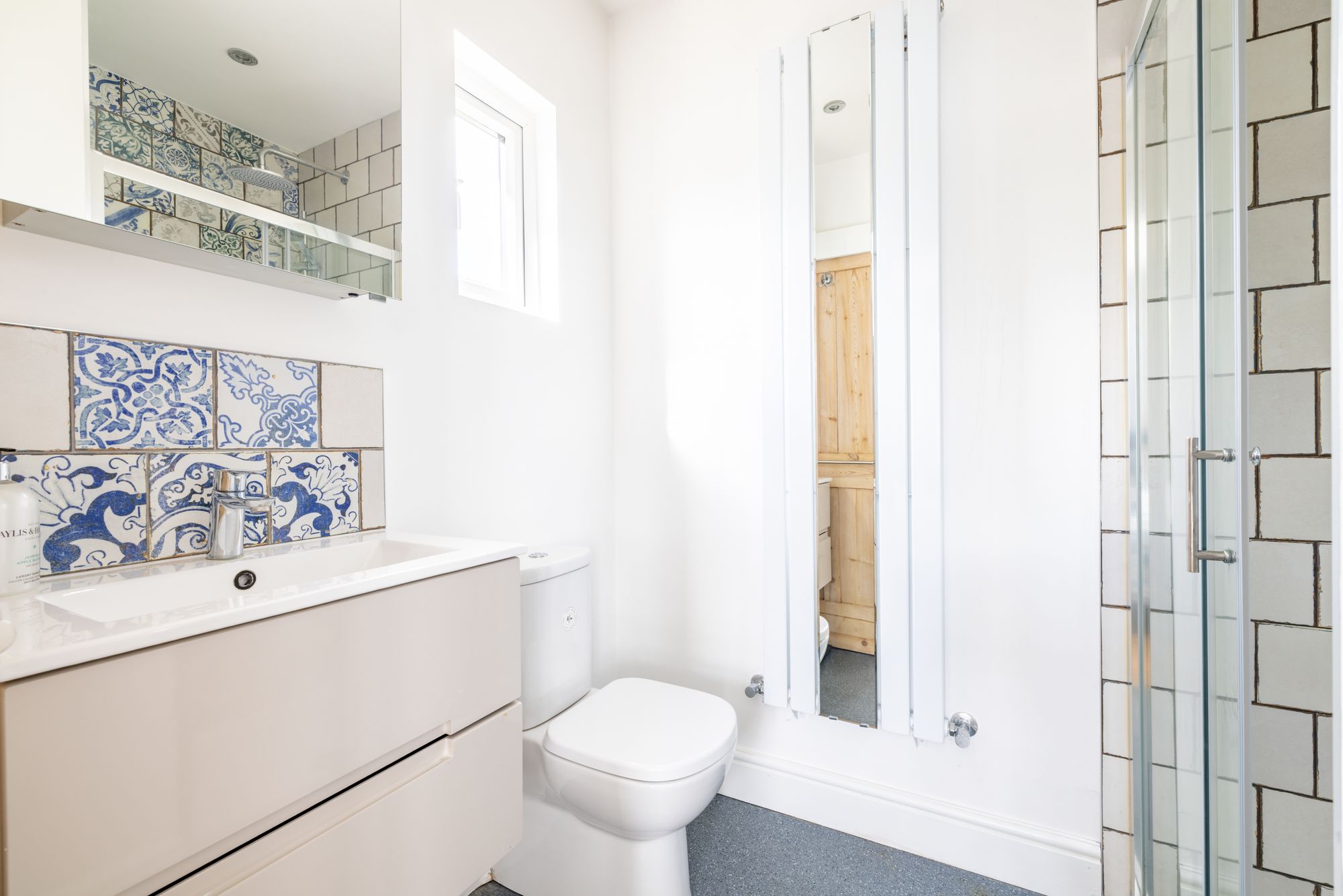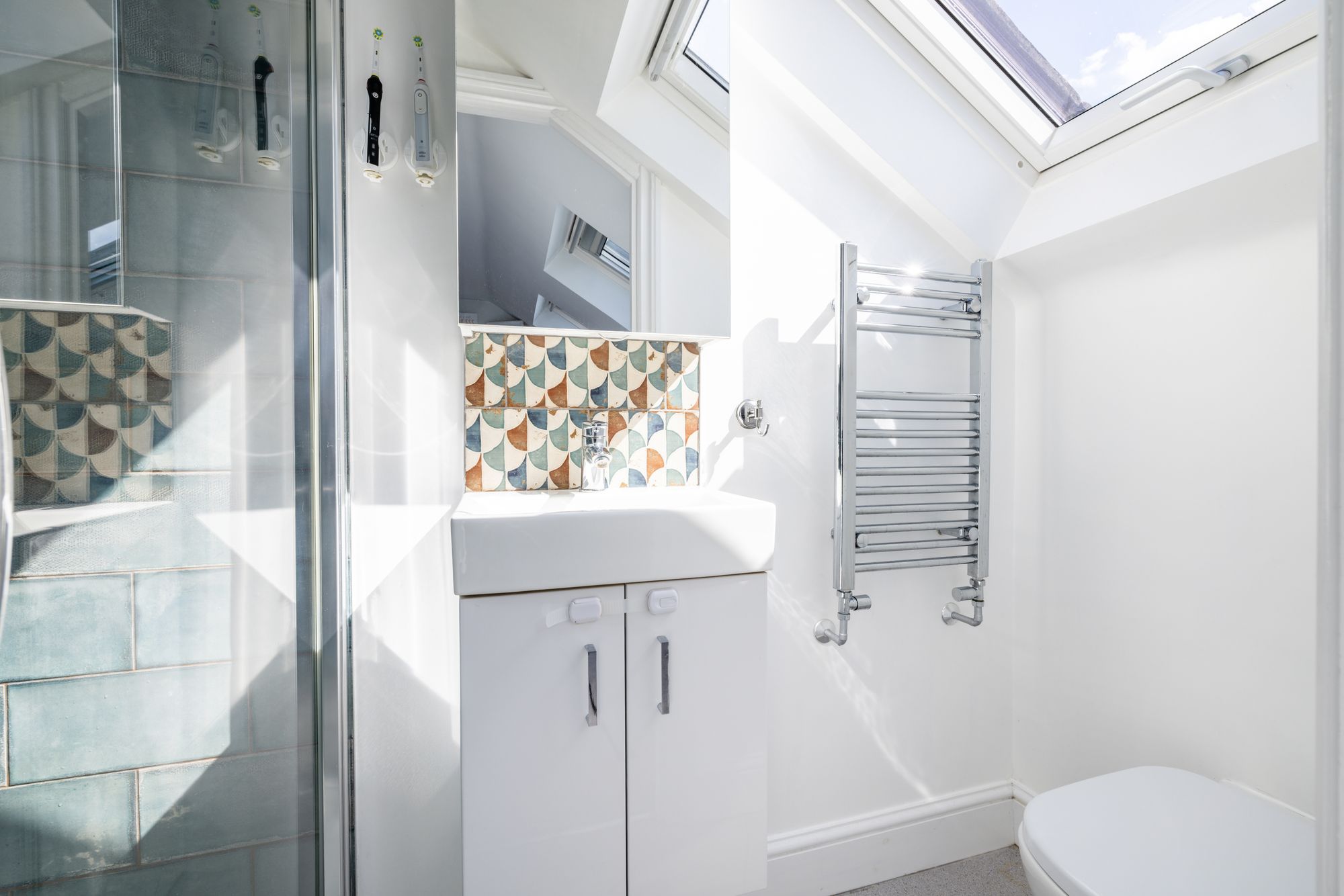 On the first floor, the generous front bedroom benefits from built-in wardrobes and a contemporary en-suite shower room. A family bathroom and an additional double bedroom at the rear provide excellent space for guests or children.