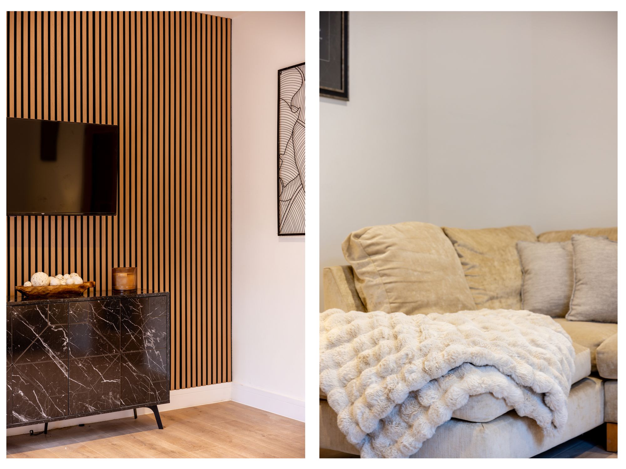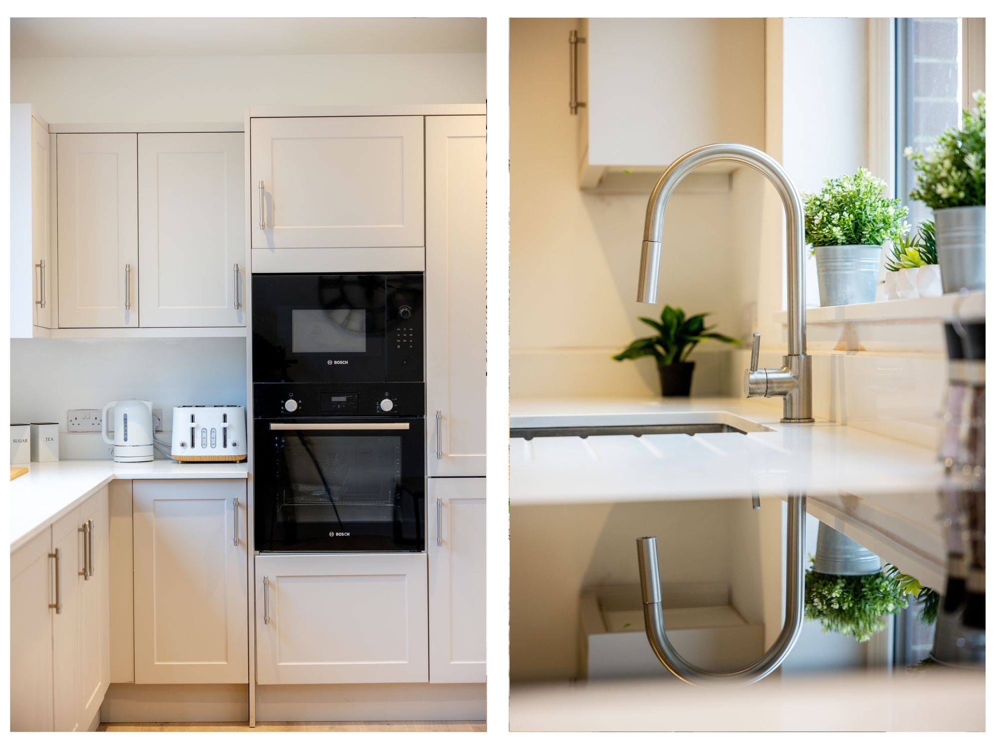 From the moment you enter, a sense of sophistication unfolds. The ground floor is a triumph of contemporary design, offering a breathtaking open-plan kitchen and dining space, meticulously curated for effortless everyday living. The kitchen itself is a statement in luxury, adorned in sumptuous cashmere shaker style cabinetry, complemented by pristine quartz worktops and a full suite of premium integrated Bosch appliances. Every detail has been considered, creating a space that is as functional as it is visually stunning.