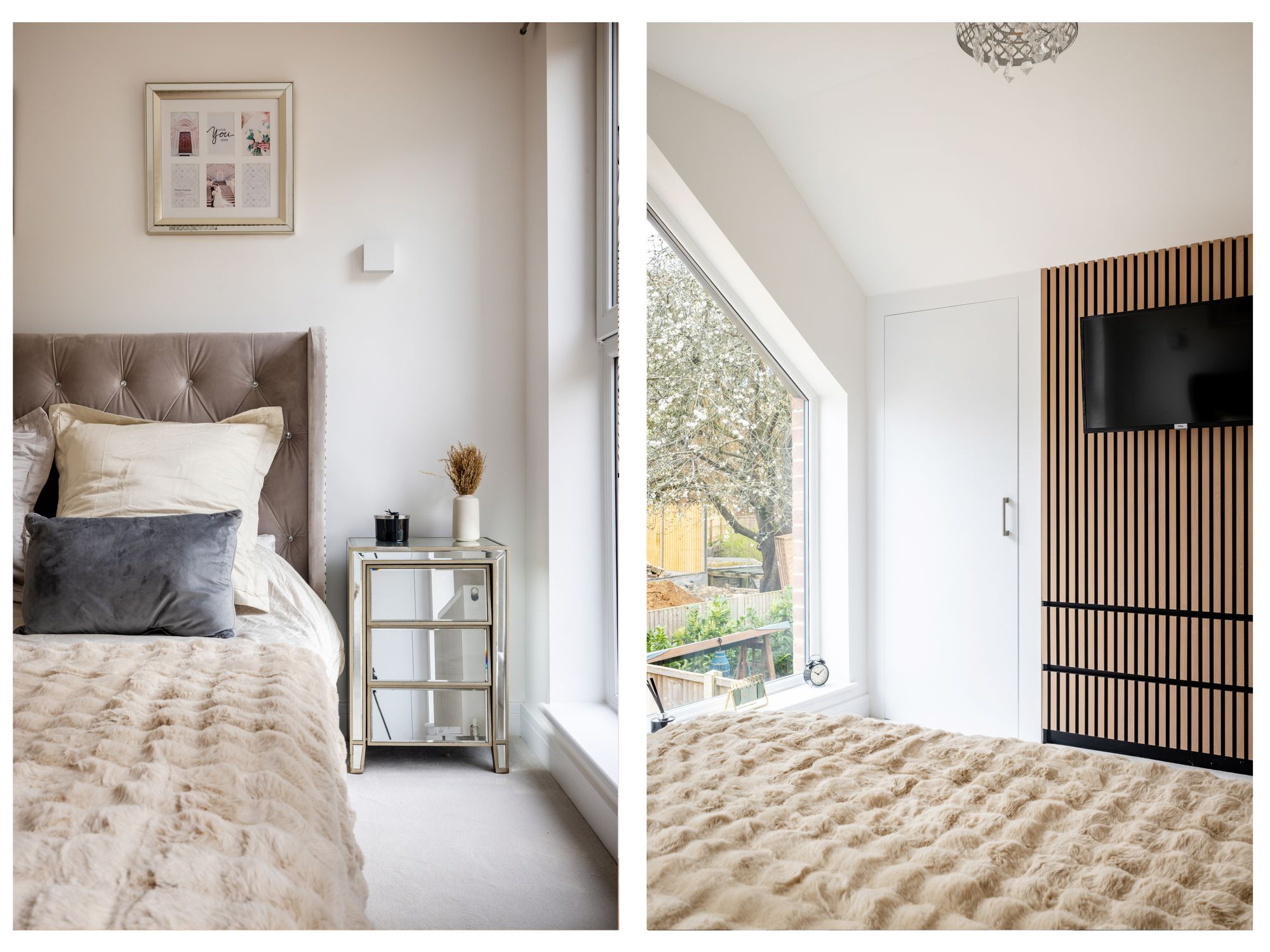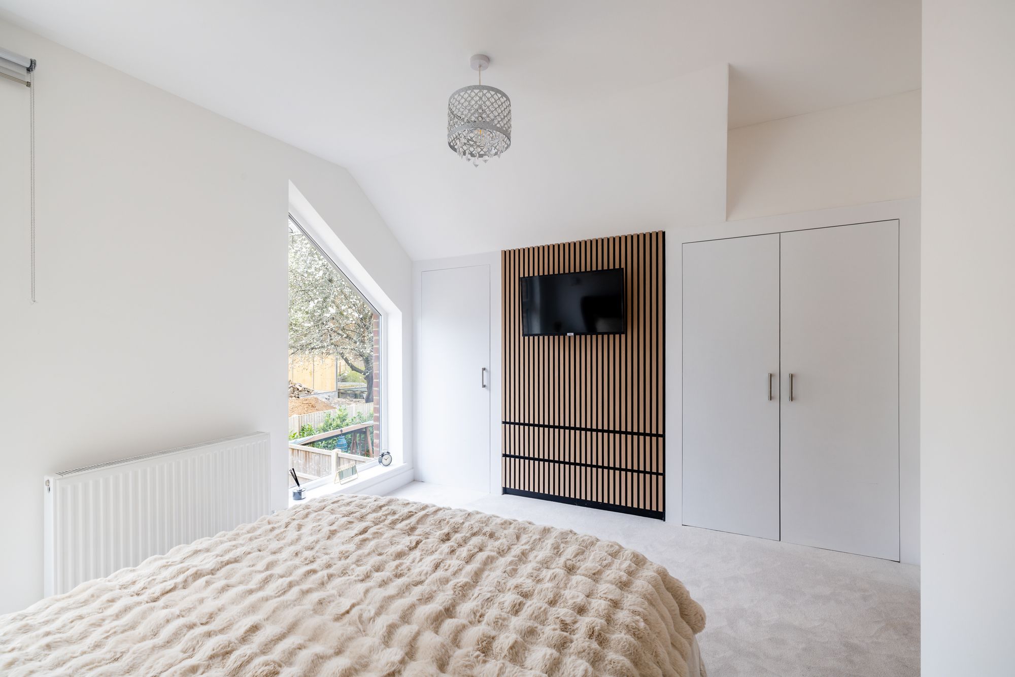 Ascending to the first floor, you’ll find three impeccably presented bedrooms. The principal suite is a sanctuary of calm and indulgence, complete with a luxurious walk-in wardrobe featuring integrated storage solutions designed with both style and practicality in mind. The additional bedrooms offer versatility, ideal for family living, guests, or a sophisticated home office.