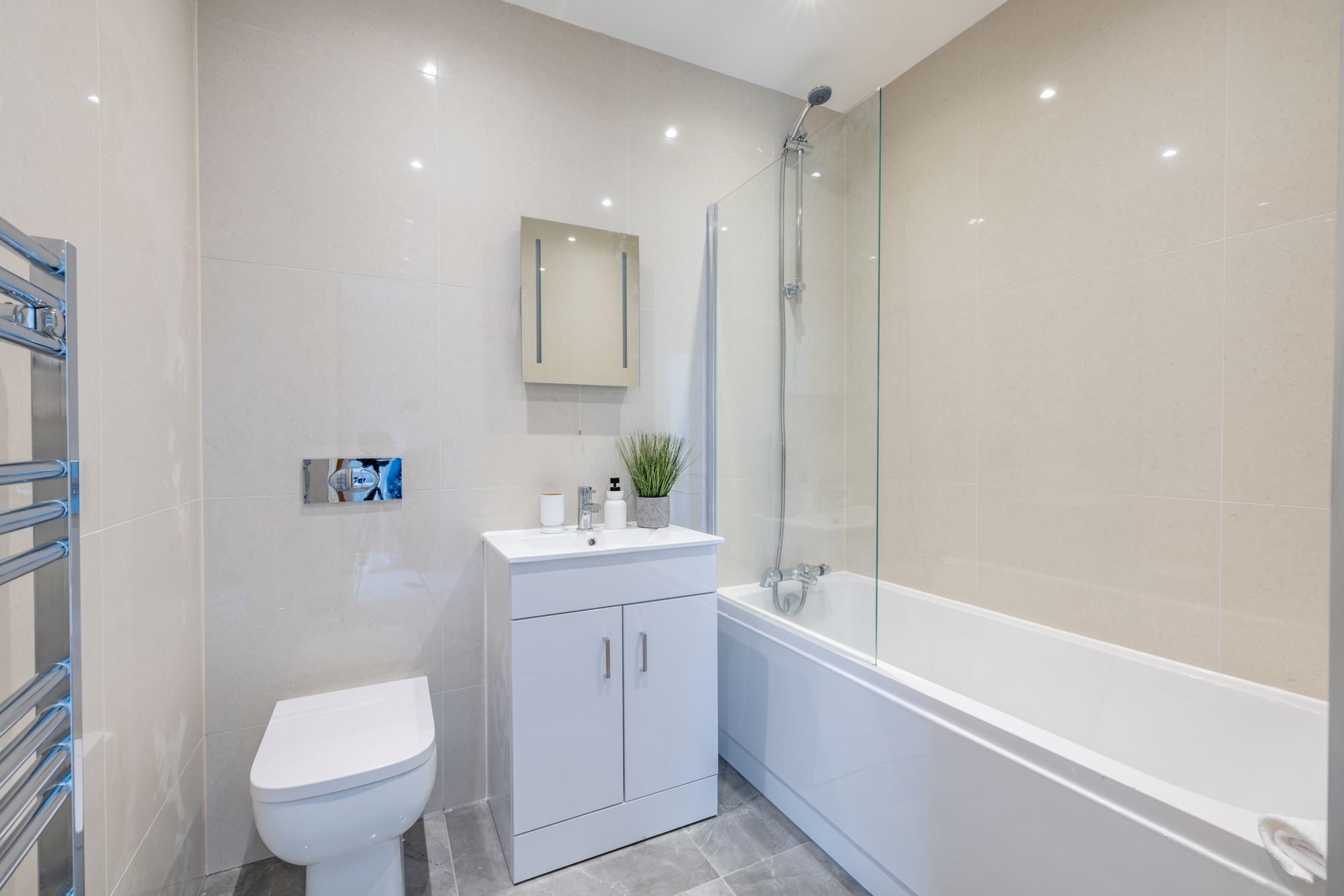 Upstairs, there are three comfortable double bedrooms, one with its own en-suite shower room and a separate family bathroom. Both bathrooms have been completed with luxury white sanitary ware and finished with grey gloss tiles to the floor and stone gloss tiles to walls.