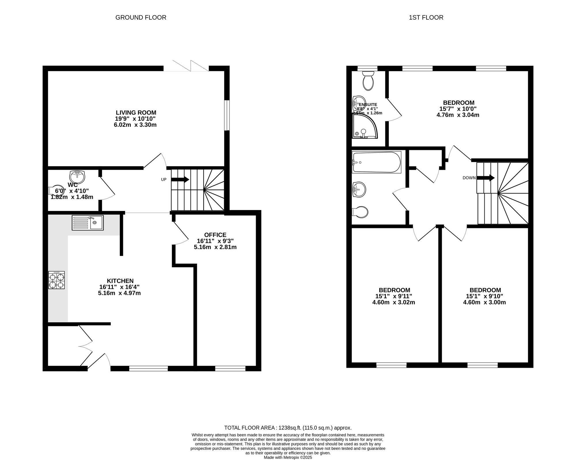 Upstairs, you’ll find three generous double bedrooms, including a luxurious principal suite with en-suite shower room, along with a contemporary family bathroom. Both bathrooms are completed with elegant white sanitaryware, gloss grey floor tiles, and stone-effect wall tiles, creating a clean, modern finish.