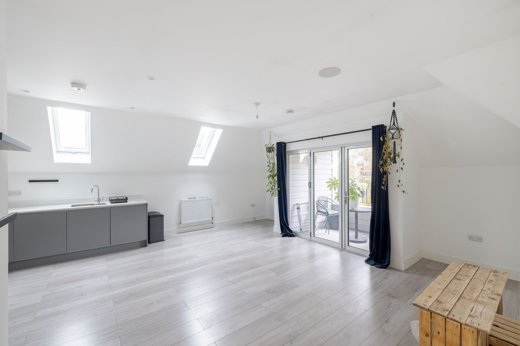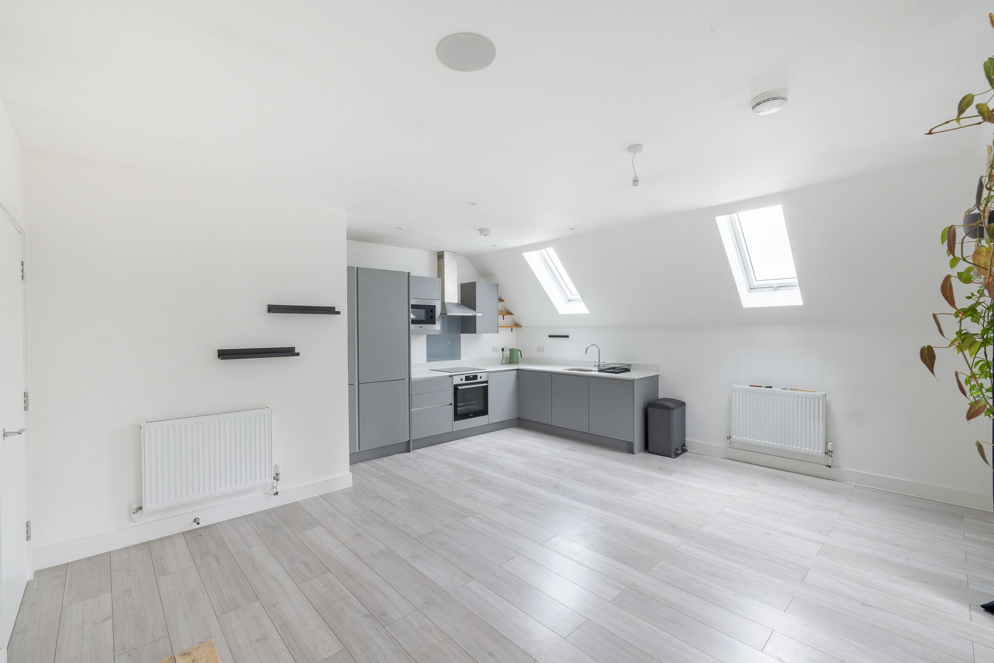 The accommodation briefly comprises an entrance hall, open-plan kitchen/ reception room with access to the private balcony. Within the kitchen there are integrated appliances. There are two well proportioned bedrooms and a contemporary family bathroom which benefits from a heated chrome towel rail and underfloor heating. Within the living room and bedrooms there are three large eave stores perfect for storing your belongings. The property also benefits from Google Nest thermostat smart heating.