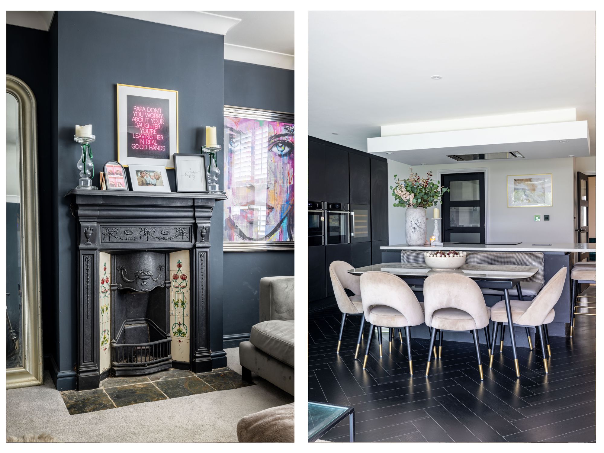 To the rear, the heart of the home is the expansive kitchen/dining/family room. Designed with both style and functionality in mind, it features black cabinetry, a striking central island, and bi-folding doors that open seamlessly onto the garden—perfect for entertaining and creating an effortless indoor-outdoor flow. A separate utility room provides further practicality.