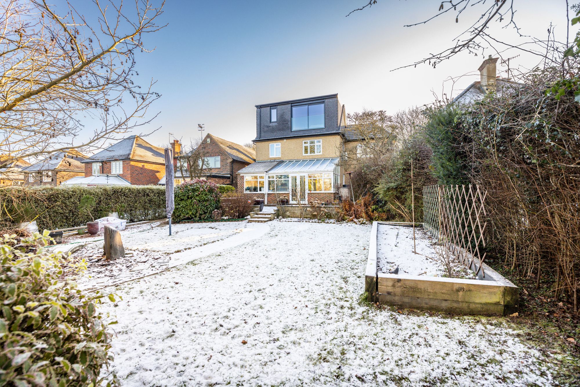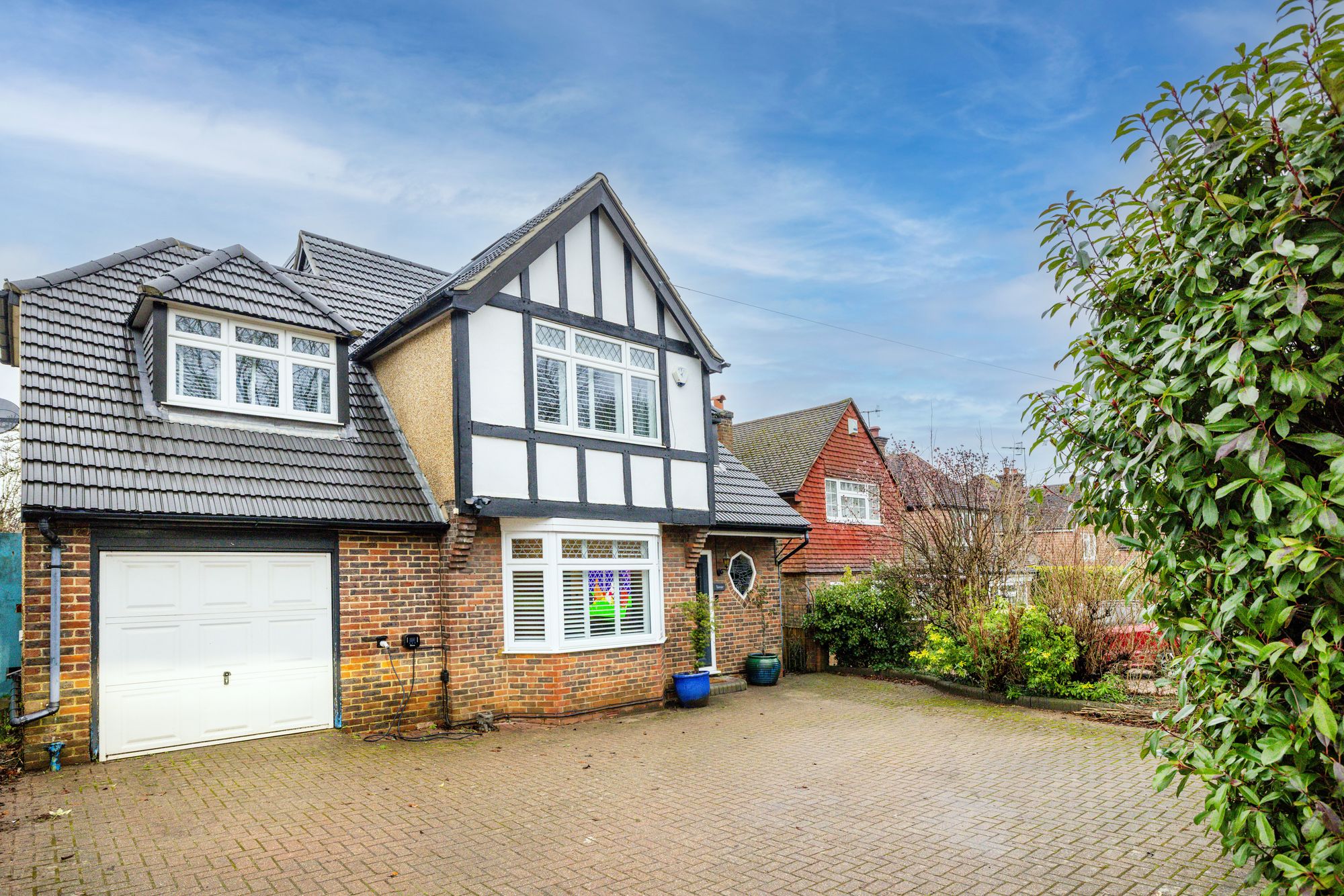 Beautiful four-bed detached home in Bletchingley with open views, stylish interiors, loft suite, large garden, garage, and parking. Close to schools, amenities, and transport links.