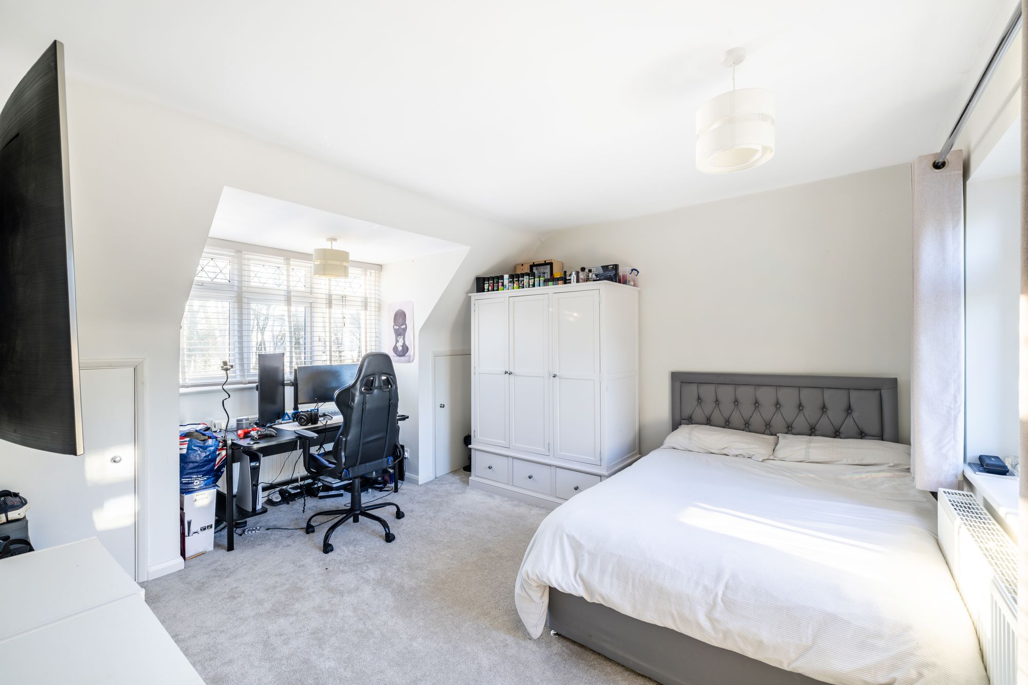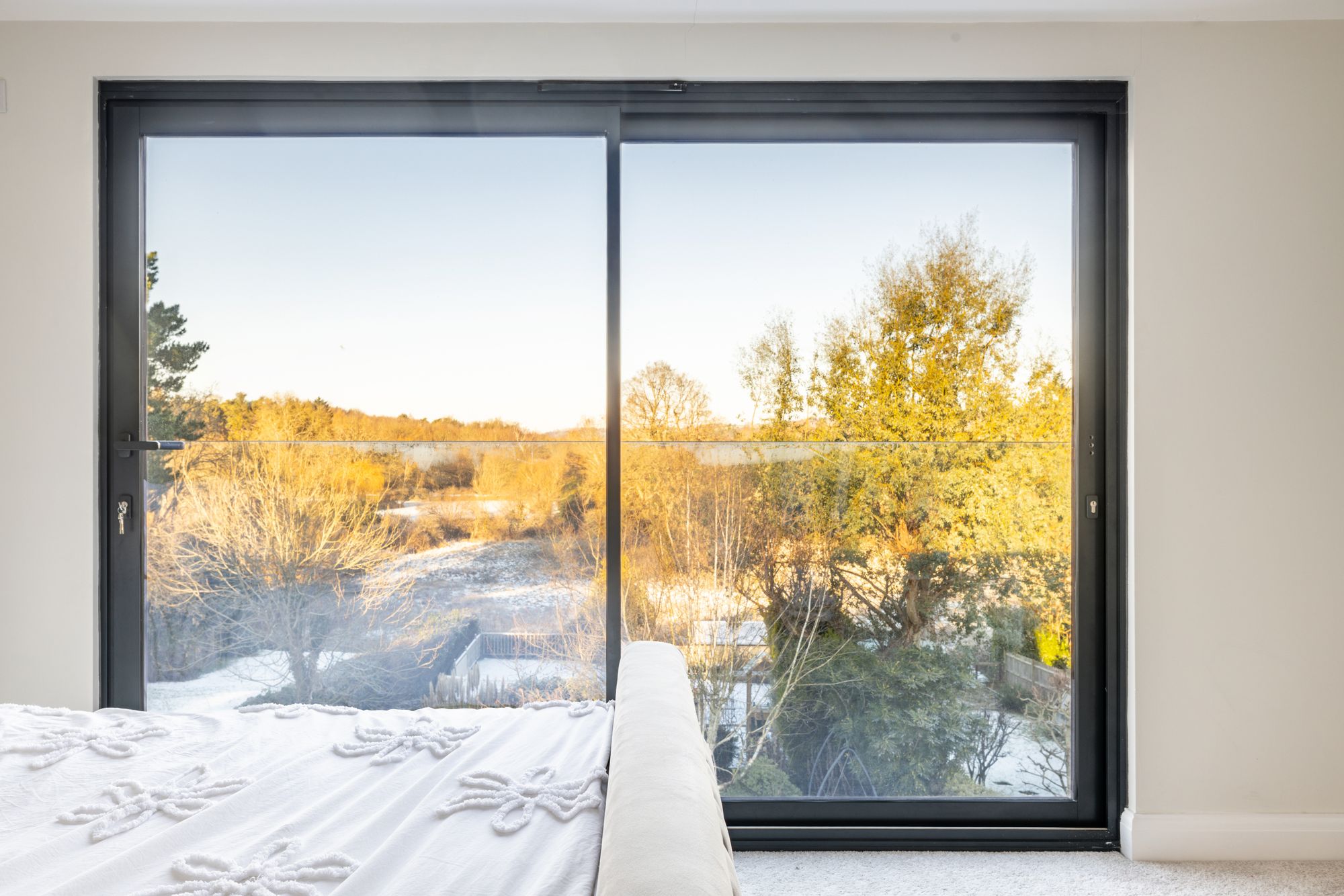 The newly completed loft extension houses an impressive principal bedroom suite, complete with an en-suite bathroom, Juliet balcony with sliding doors, and lovely elevated views. Throughout the property there is an abundance of eaves storage and built-in cupboards, ensuring excellent storage solutions.