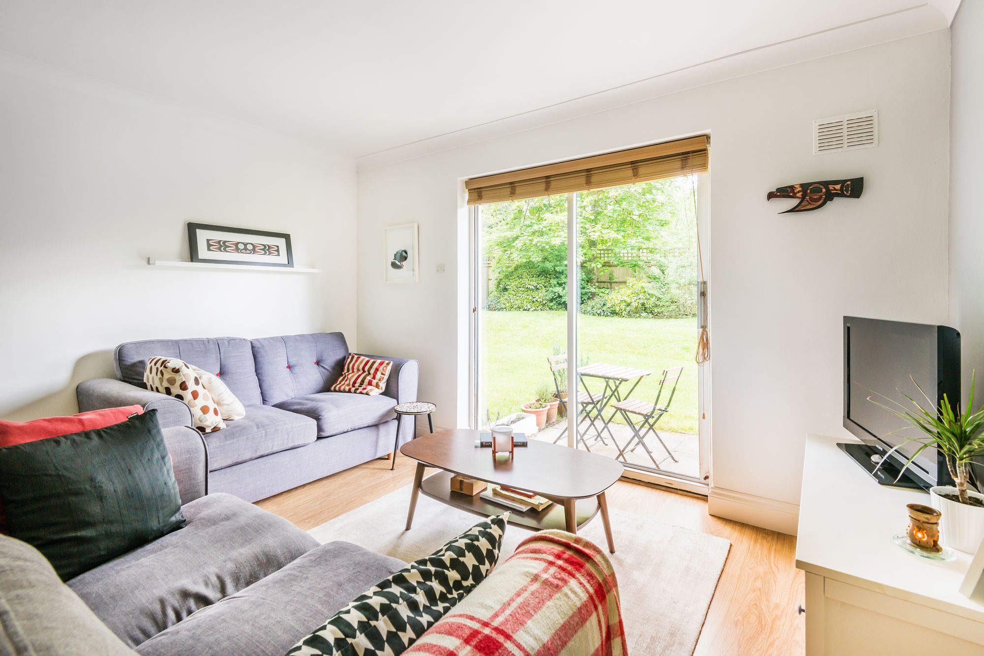 The apartment has and open plan Sitting Room and Kitchen with plenty of preparation and storage space in the Kitchen. There is space to entertain, with room for a dining table and patio doors which lead directly out onto the communal garden and BBQ area. The spacious double Bedroom overlooks the communal garden, with both rooms enjoying plenty of light. There is useful storage in the Bathroom and coat hanging space in the hall.