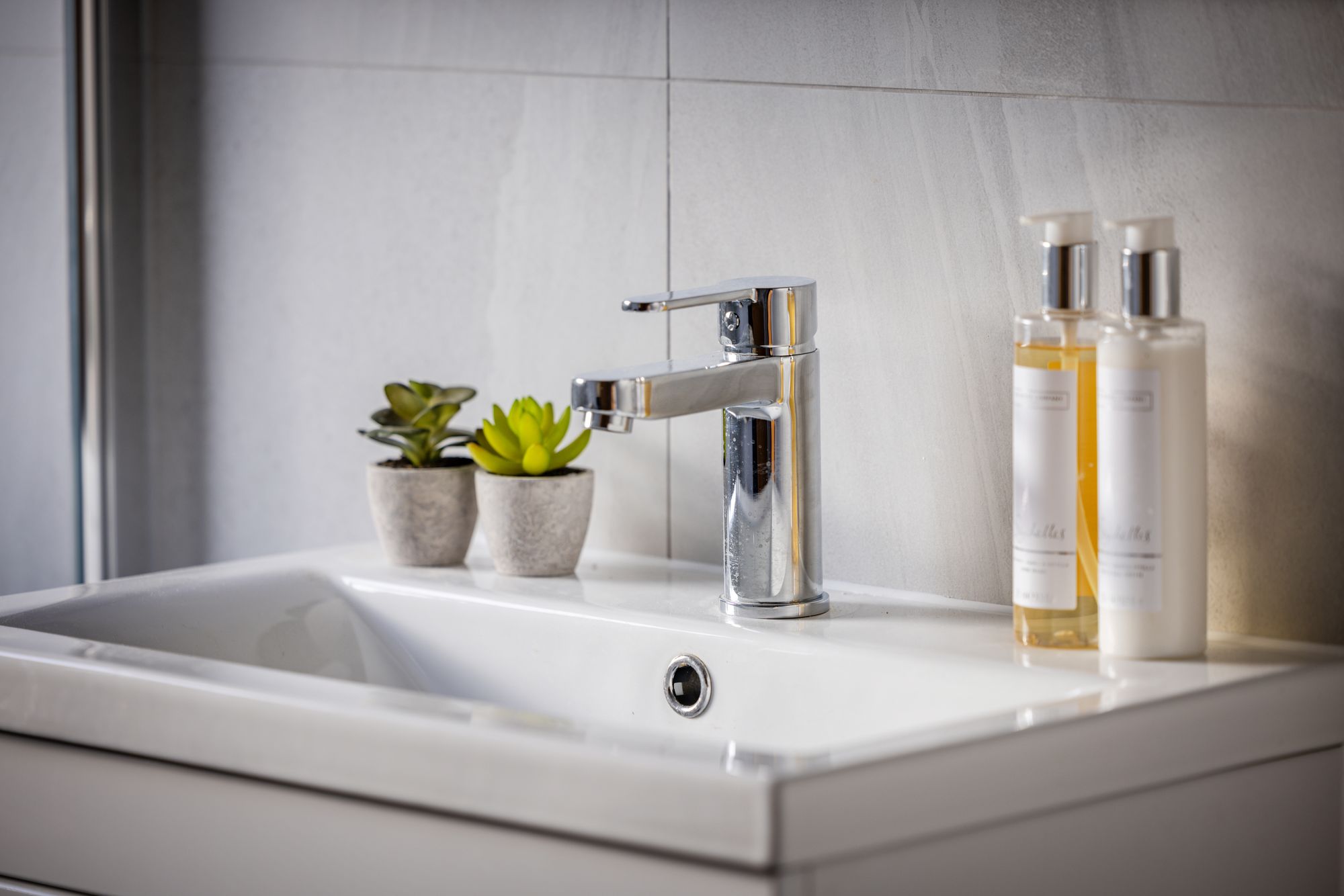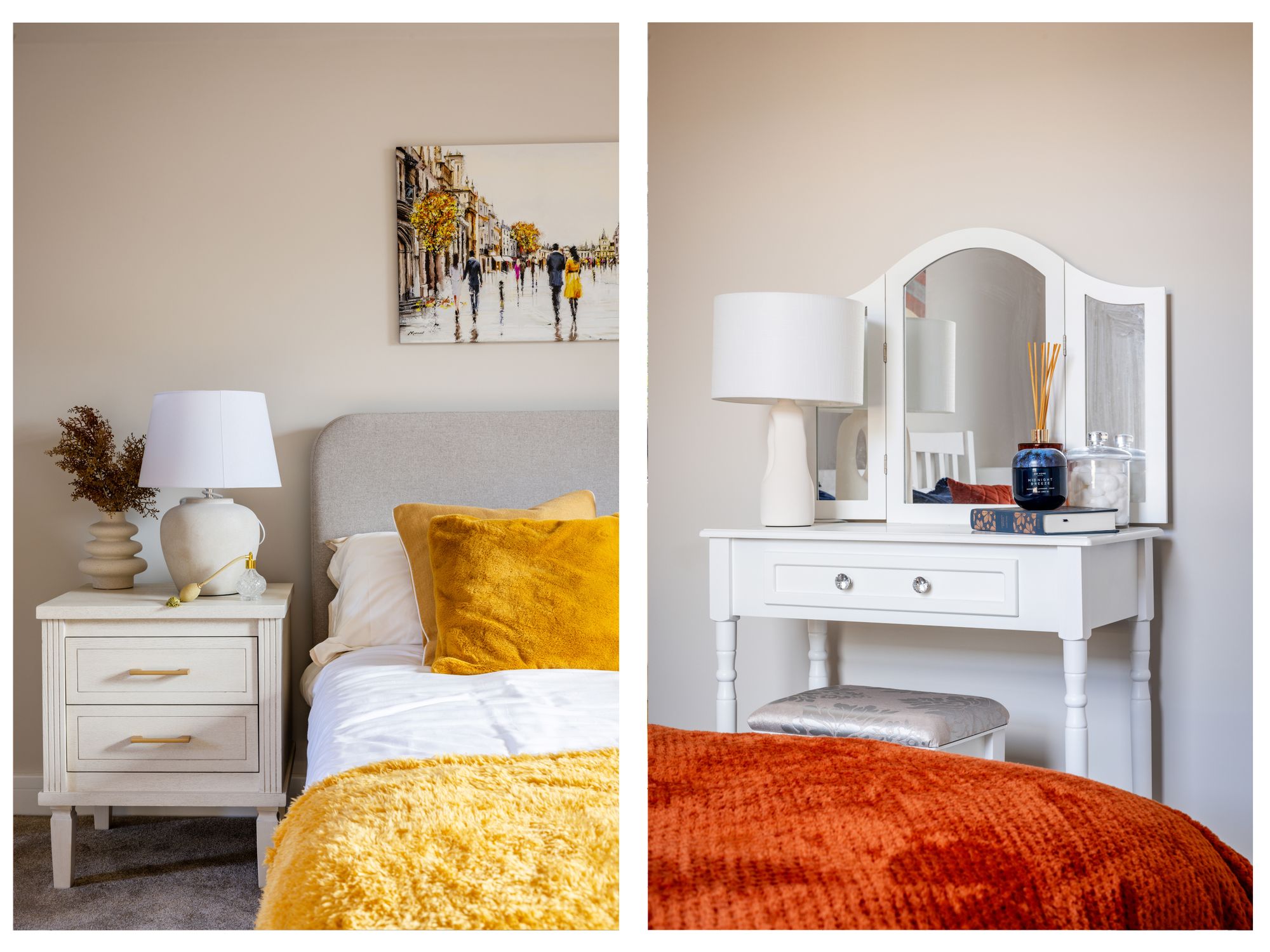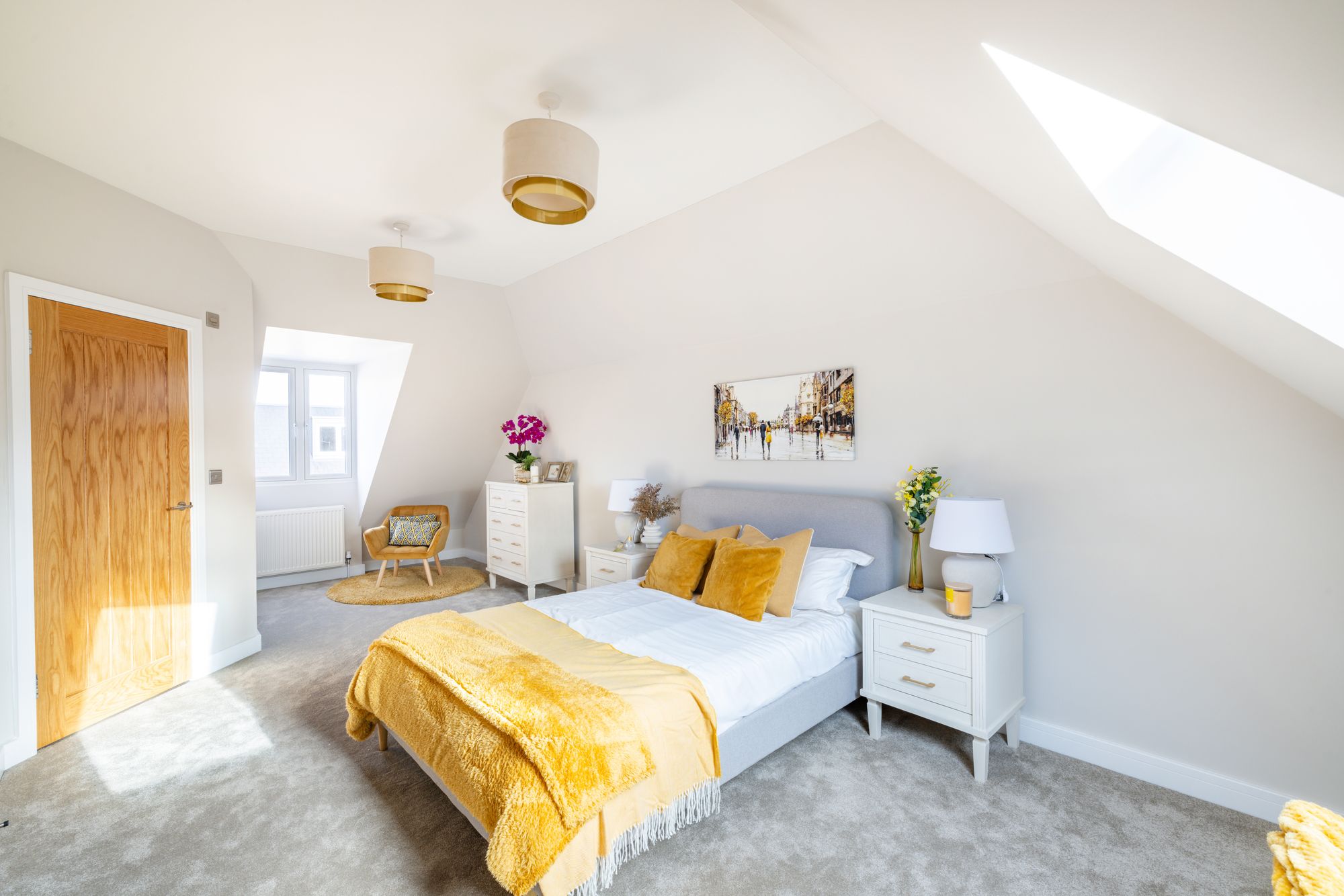 Across the first and second floors are four beautifully finished bedrooms, three contemporary bathrooms, a dedicated study and abundant storage. The master suite is an impressive retreat, complete with a spacious walk-in wardrobe. Every bedroom features luxurious, anti-stain 100% wool carpets, enhancing comfort and elegance. The sleek bathroom suites boast pristine white sanitary ware, including a Dunsford bath with chrome shower attachments and a three-outlet thermostat, complemented by a wall-hung toilet with stainless steel flush plate, a contemporary vanity unit with basin and chrome mixer tap, and an LED-lit mirror. Each space is immaculately finished with grey porcelain tiles for a refined, modern aesthetic.
