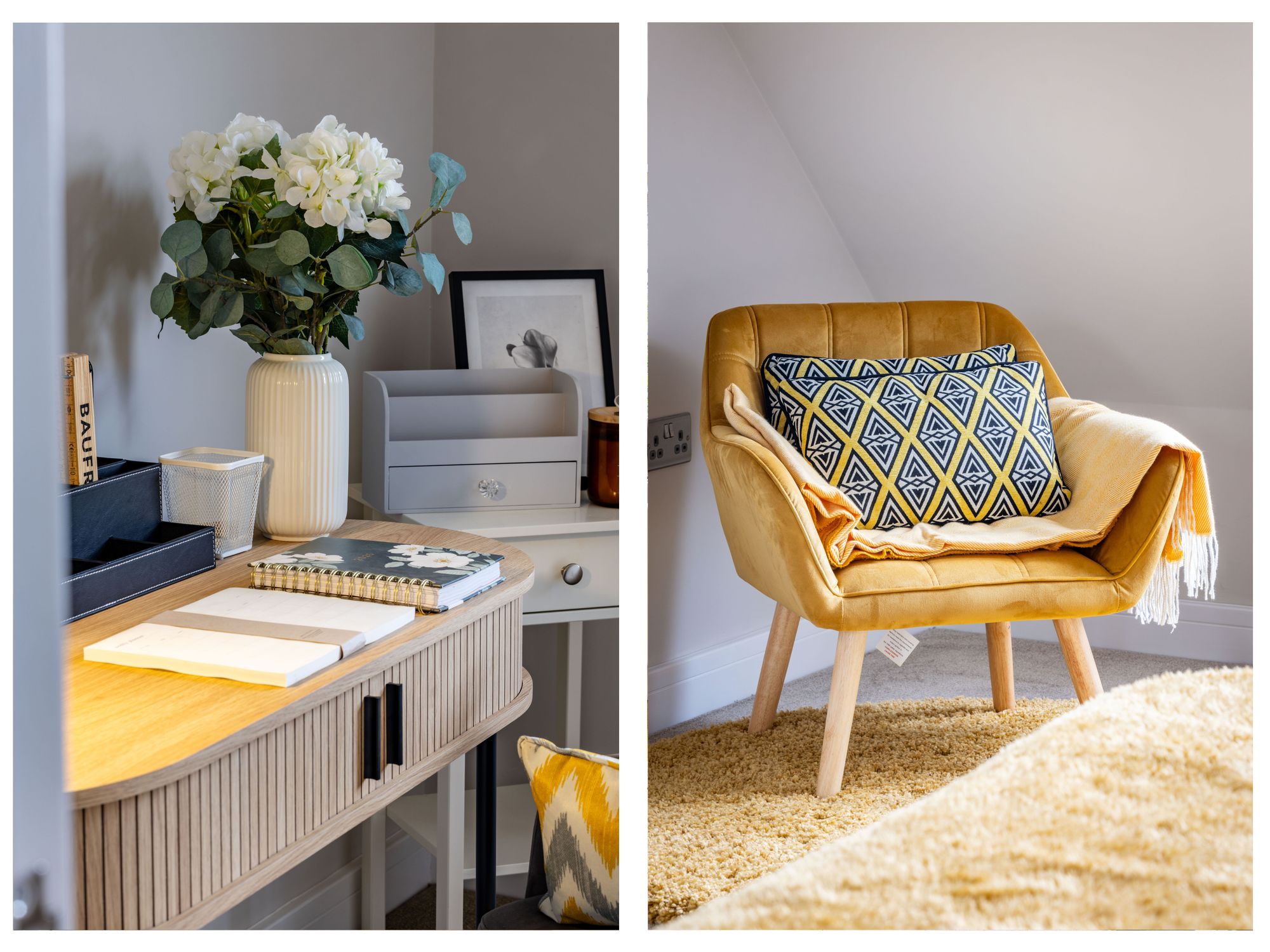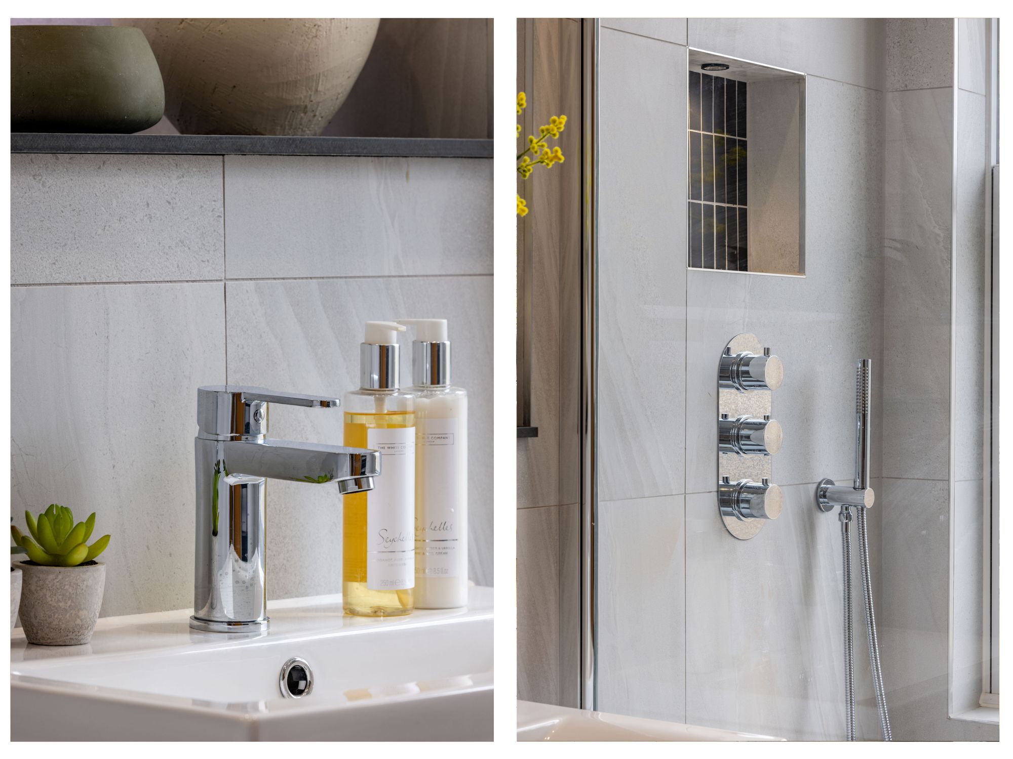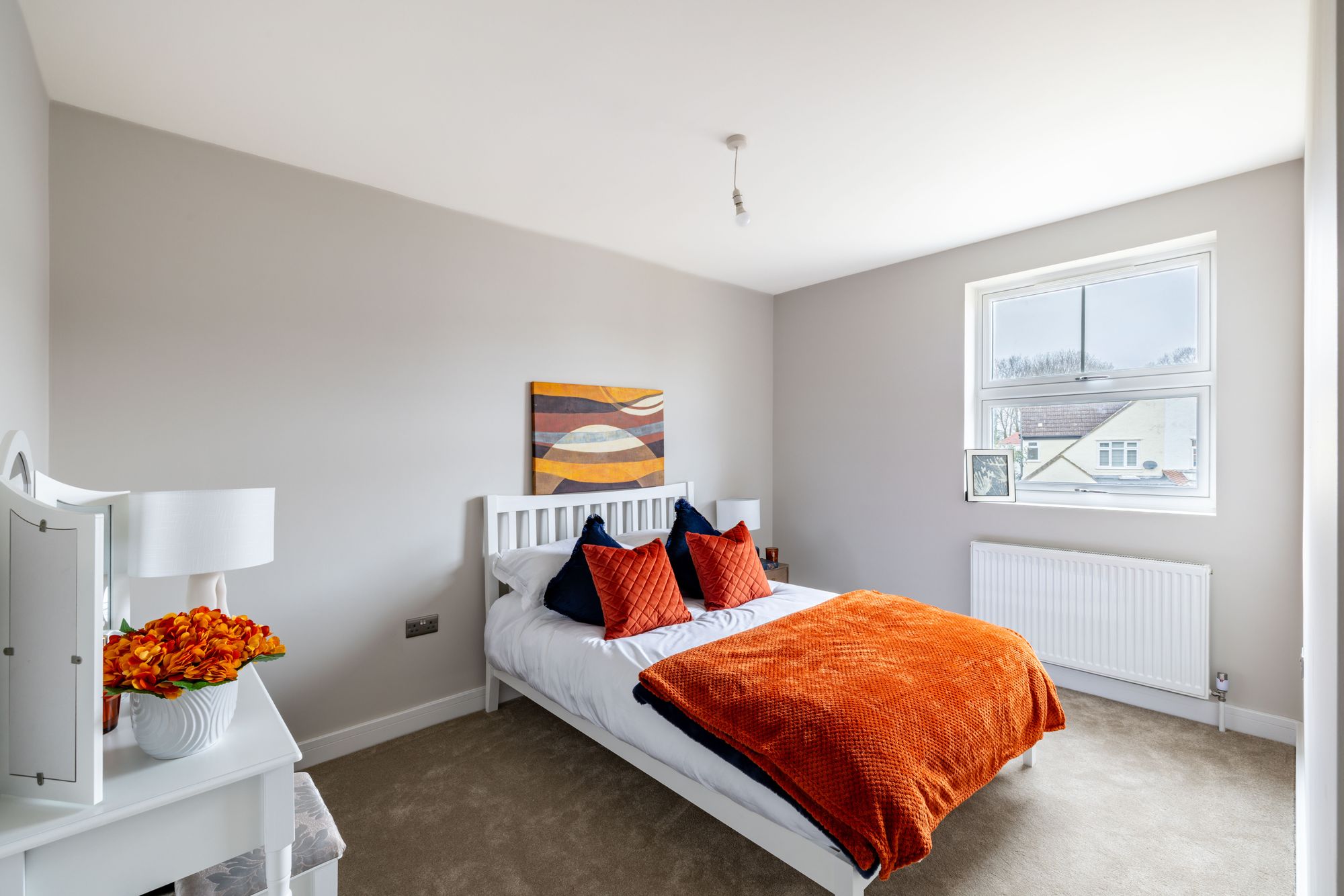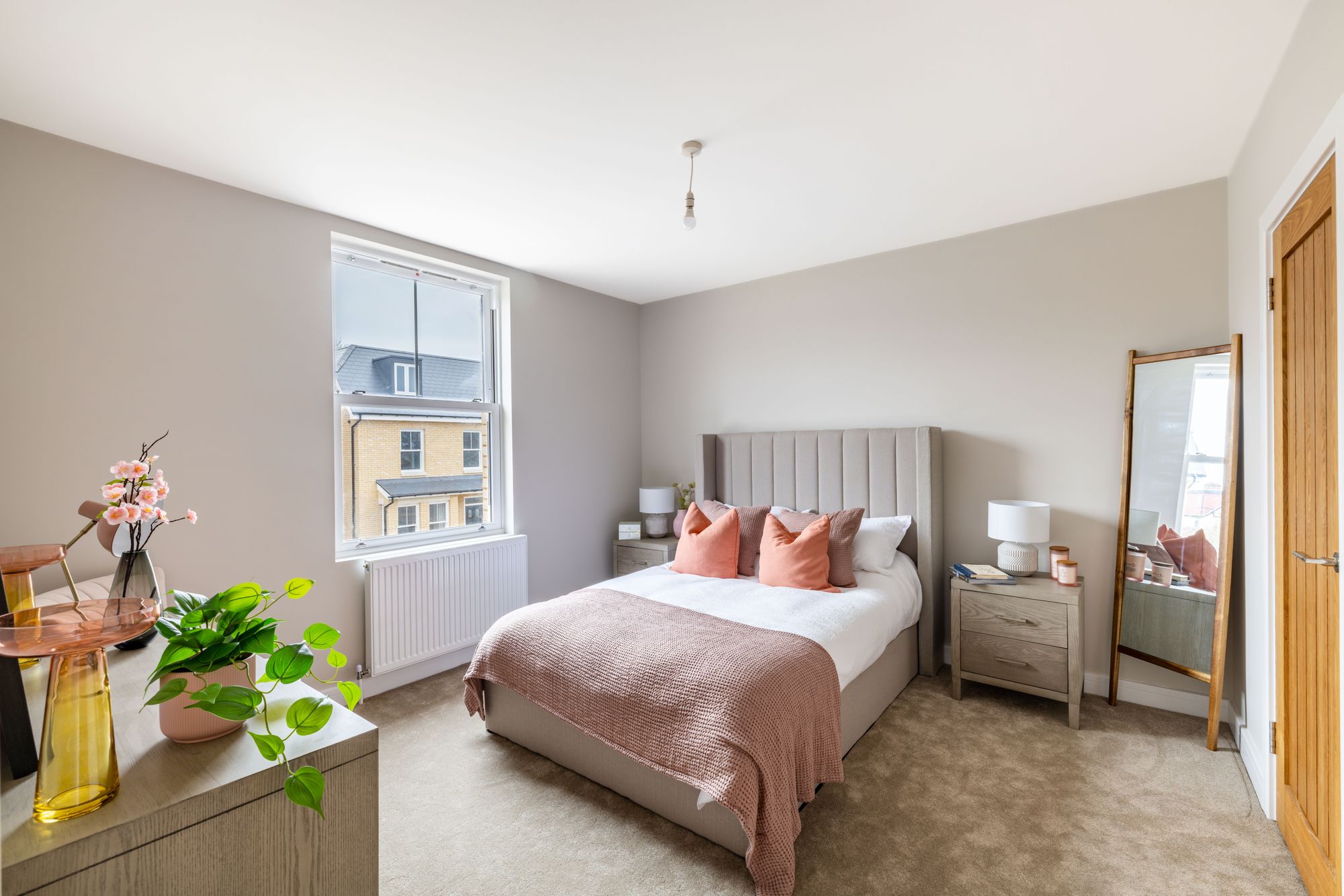 The first and second floors are home to three bedrooms, two bathrooms, additional study and ample storage. All bedrooms have been finished with luxury anti-stain 100% wool carpets. The modern, sleek bathroom suites with white sanitary ware, comprise of a Dunsford bath with chrome bath and shower attachments, a three outlet 2 valve thermostat, and bath screen. There is a wall hung toilet, with a stainless-steel flush plate. A wall hung vanity unit is perfect for hiding away toiletries, a hand wash basin with chrome mixer taps and an LED light mirror above. Immaculately finished with porcelain wall and floor tiles in grey.