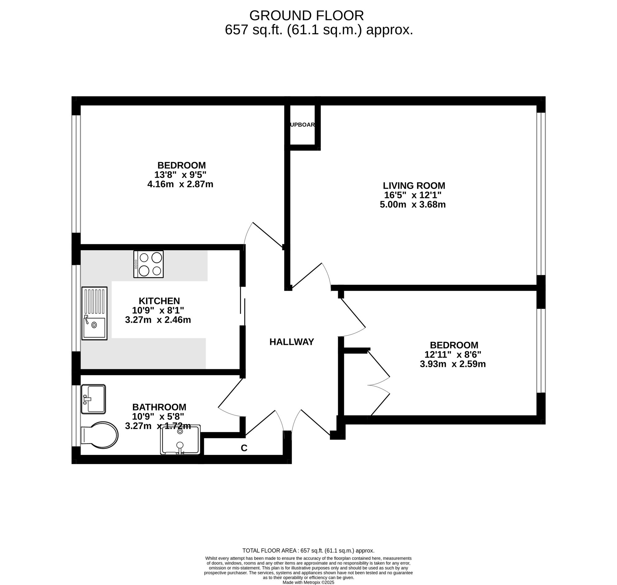 Upon entering, you are welcomed by a generous hallway with ample space for coat and shoe storage. The modern kitchen offers plenty of cabinet storage and worktop space, while the bathroom has been finished to a high standard. The large living room provides a bright and comfortable space for relaxing or entertaining, and there are two good-sized double bedrooms.