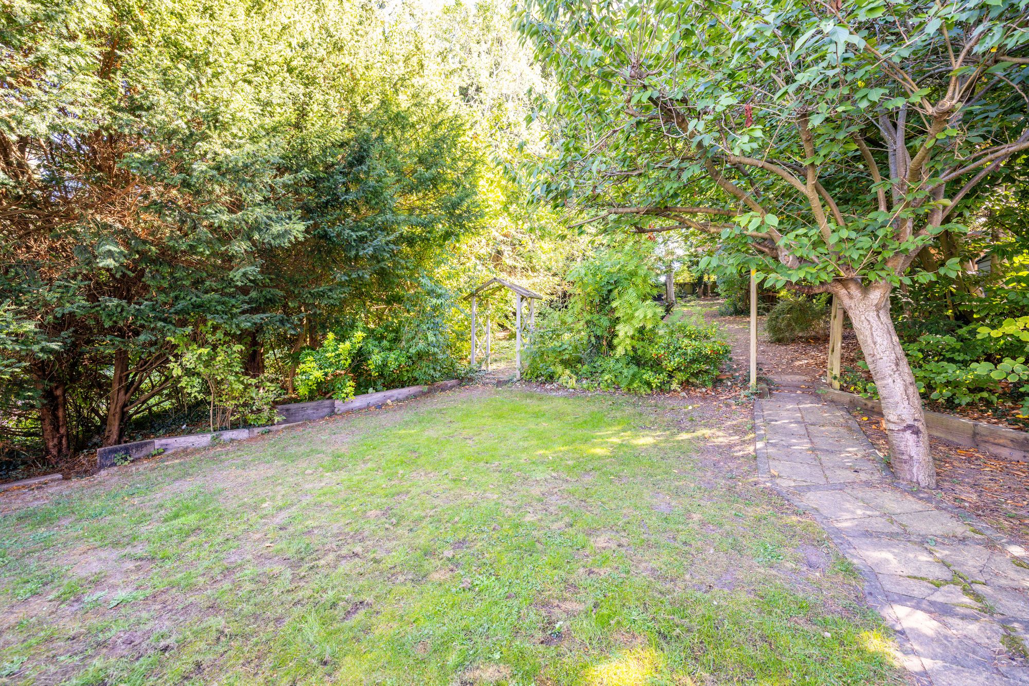 Outside, the tiered rear garden offers both privacy and charm, with a decked entertaining area, established lawn, and mature trees including a fruit bearing apple tree. To the front, the property benefits from a garage and driveway parking for two cars.