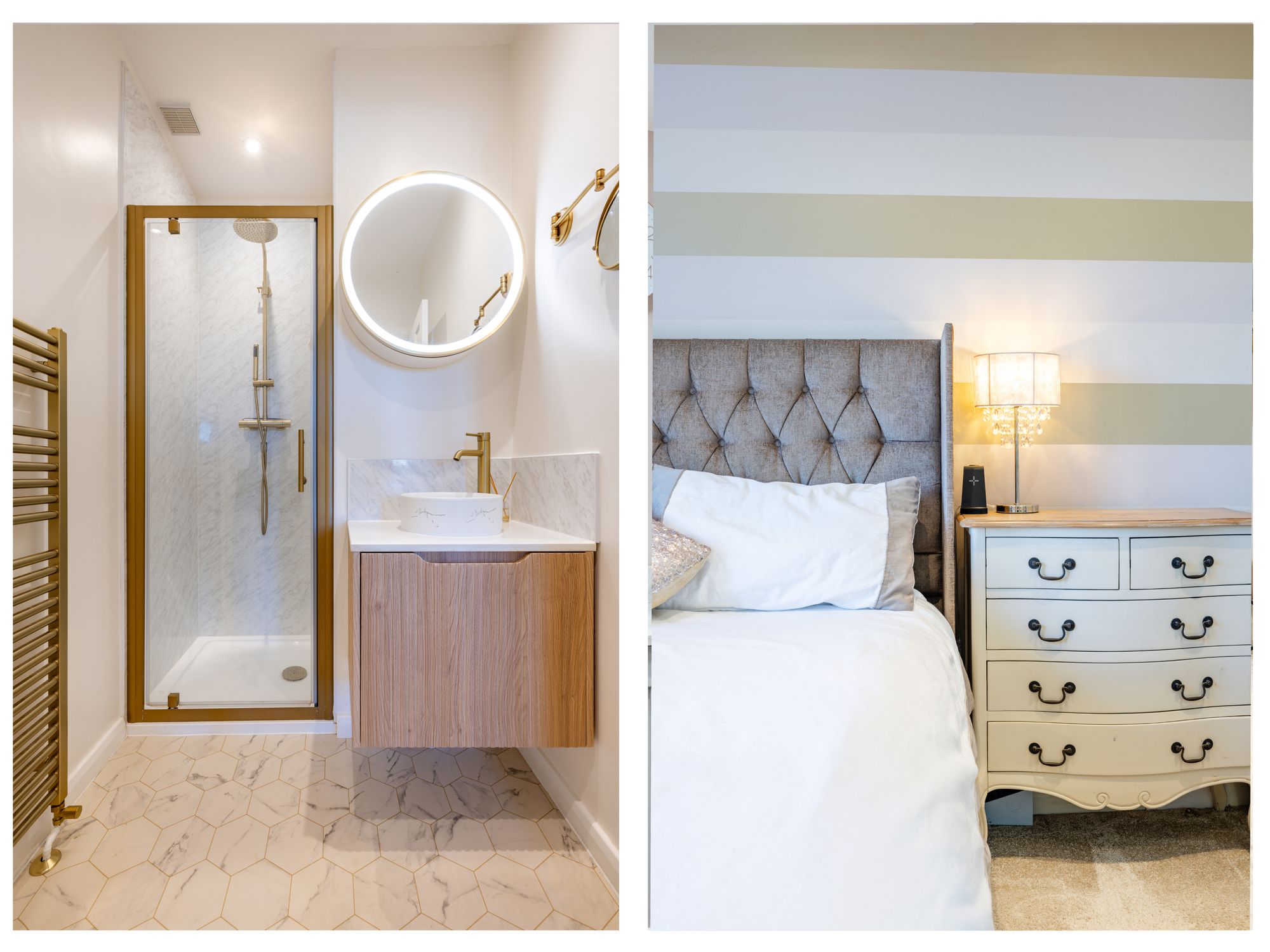 Upstairs, you’ll find four further double bedrooms. The master enjoys its own en-suite shower room, while the remaining bedrooms are served by a sleek family bathroom, all bathrooms having been upgraded within the last year. Two of the bedrooms also benefit from fabulous views, making the most of the home’s elevated position.