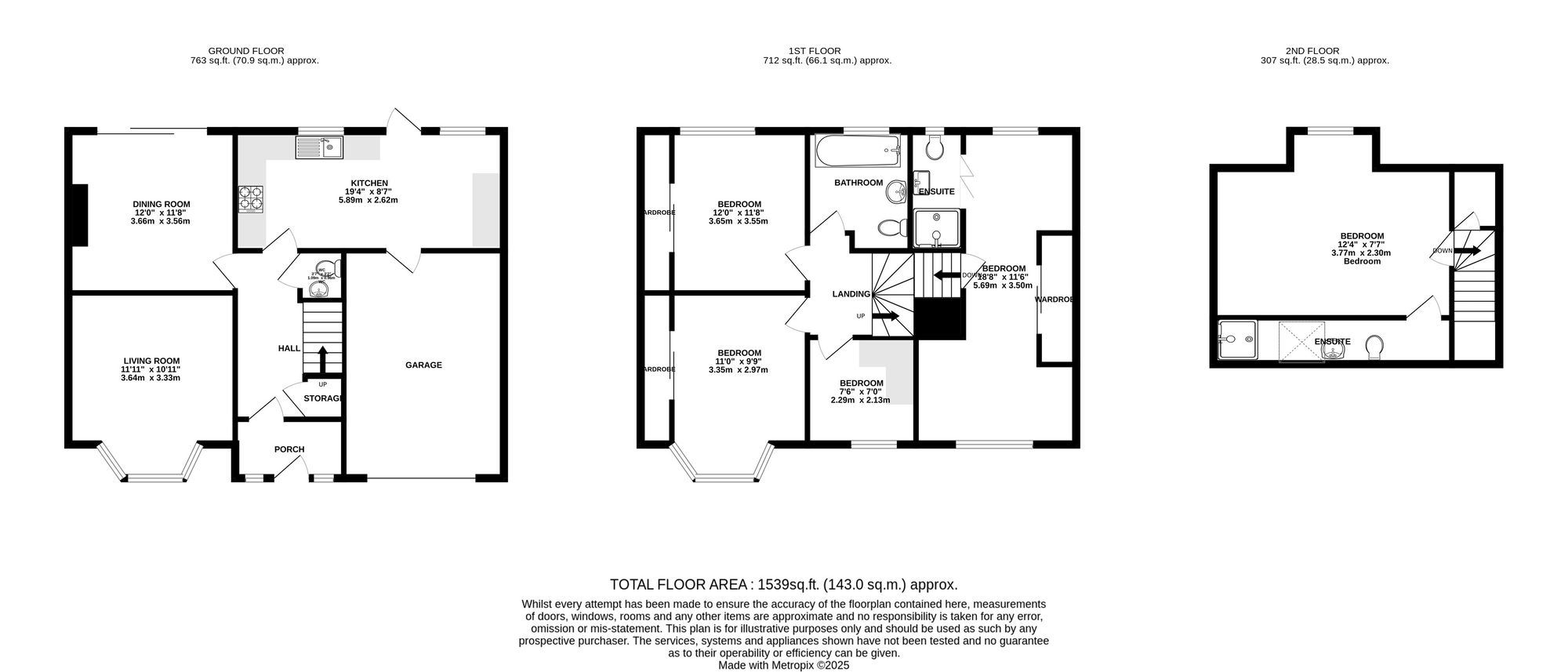 The second floor hosts a further spacious bedroom with an en-suite shower room, offering excellent versatility for guests, older children or a private home office. Generous eaves storage is also available on this level.
