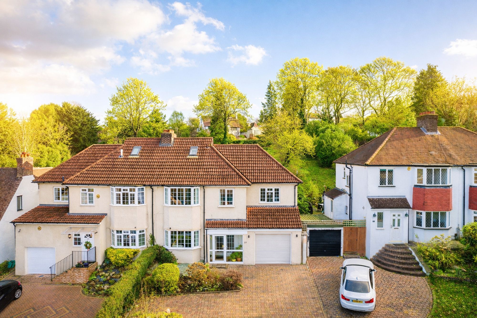 Guide price £750,000 – £775,000. Elegant five bedroom semi detached house in Purley with featuring open-plan living, fitted kitchen, 3 bathrooms, tiered garden with summer house, and off-street parking.