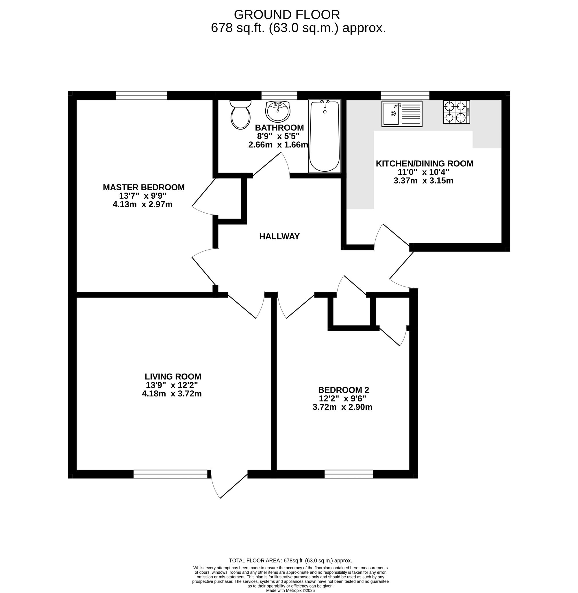 The accommodation briefly comprises entrance hall with storage cupboards, a spacious living/dining room, a separate modern kitchen with fitted appliances. There are two double bedrooms, the master bedroom featuring a built in wardrobe. There is also a contemporary family bathroom.