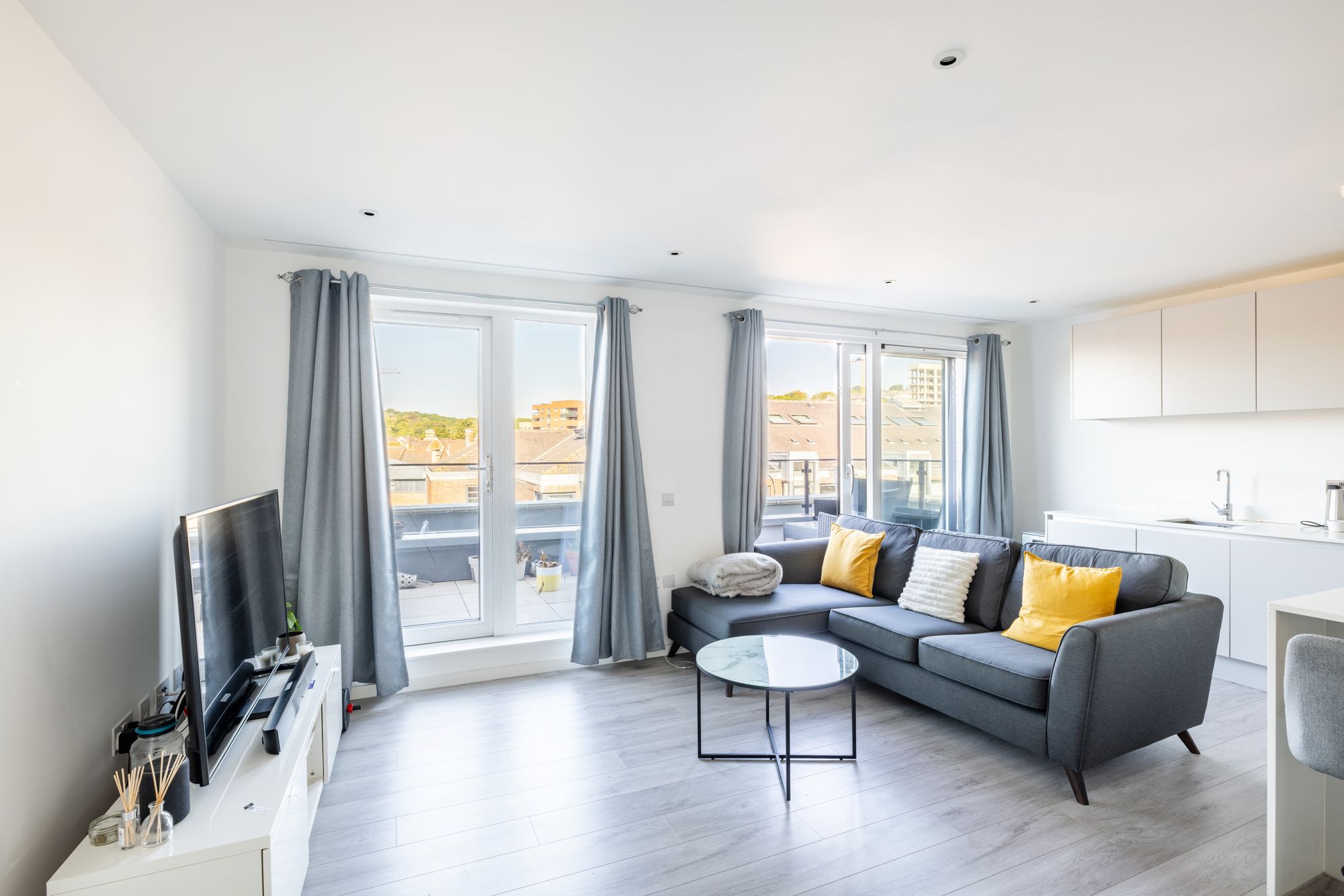Guide Price - £300,000 to £325,000. Completed in 2021, contemporary apartment close to amenities. 3rd floor with open-plan kitchen reception room, private balcony, spacious bedroom with natural light.