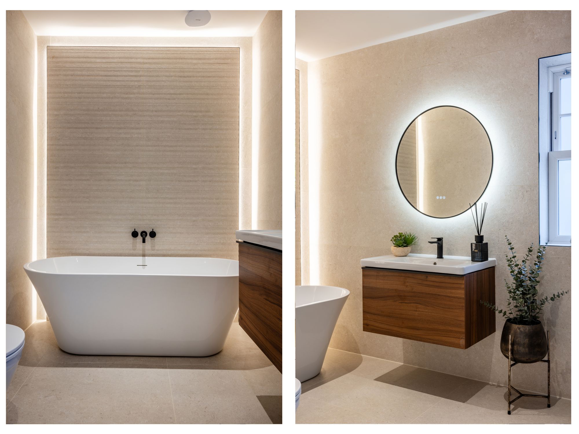 Located on both the first and second floors; you will find four generously sized double bedrooms, offering a beautiful retreat complete with luxurious carpeting and stunning built in wardrobes in select bedrooms. You will also find, family bathrooms designed with a contemporary aesthetic, featuring white Duravit sanitaryware throughout complemented with black fixtures and fittings. The bathrooms include a separate bath and/or shower, a basin complete with mixer tap, and a toilet with a soft-close seat and flush plate. The bathroom boasts a chrome heated towel rail and is finished with Porcelanosa textured tiles.