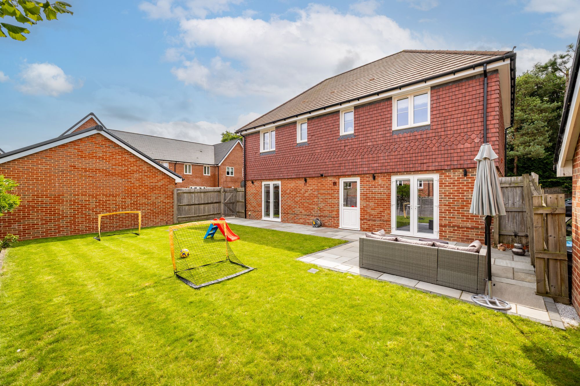 Outside, a detached garage and a driveway capable of accommodating up to three vehicles offer ample parking space. The well-manicured rear garden and patio area provide a serene retreat for outdoor enjoyment and leisure. Situated just a short walk away are village shops and a reputable primary school, ensuring convenience and quality education within reach. For those commuting or looking to explore further afield, the property is a short drive to the motorway and Three Bridges mainline station. This property marries modern comfort with practicality, making it the ideal family home.
