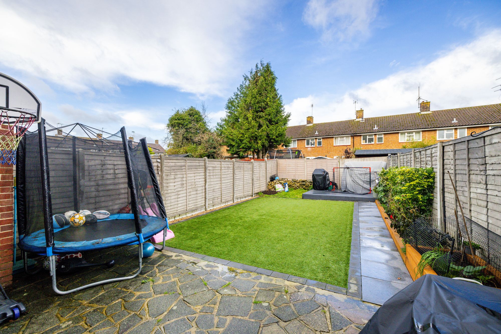 A key highlight is the low-maintenance, all-year-round garden, which the sellers have upgraded to a modern artificial lawn, perfect for enjoying the outdoor space through every season.