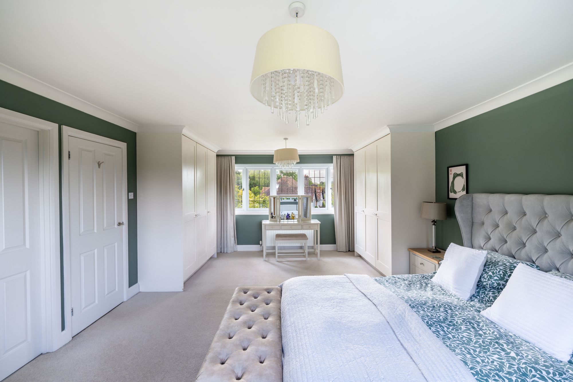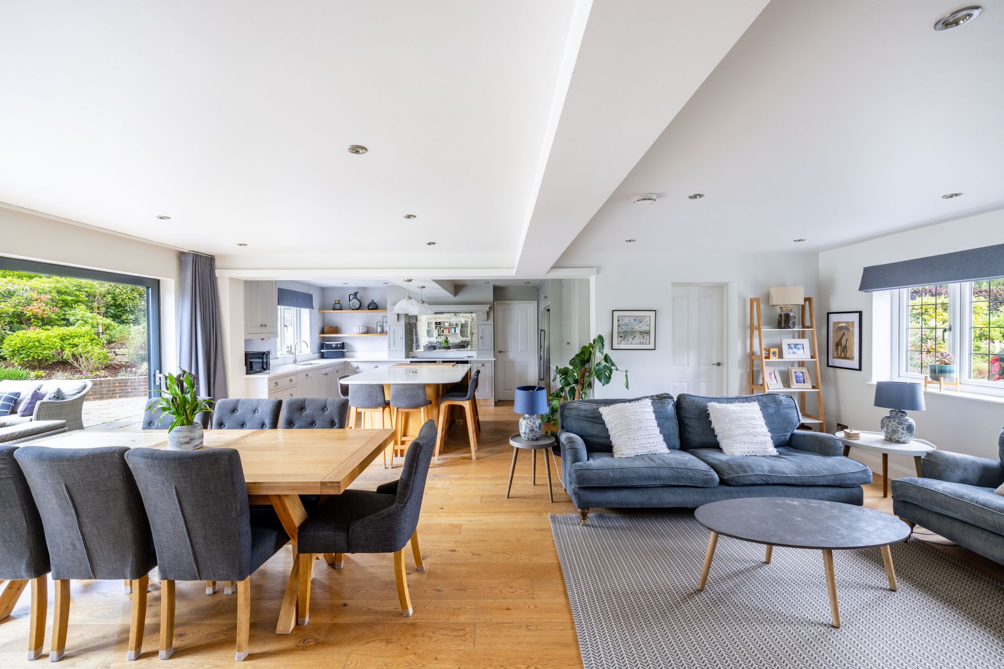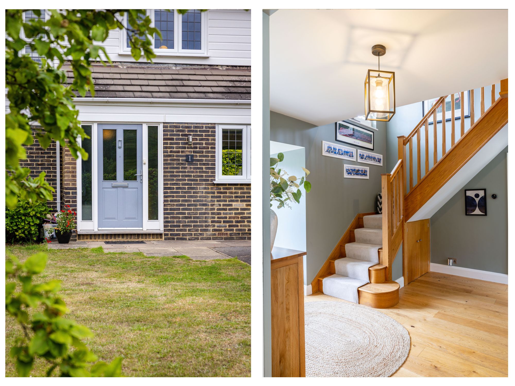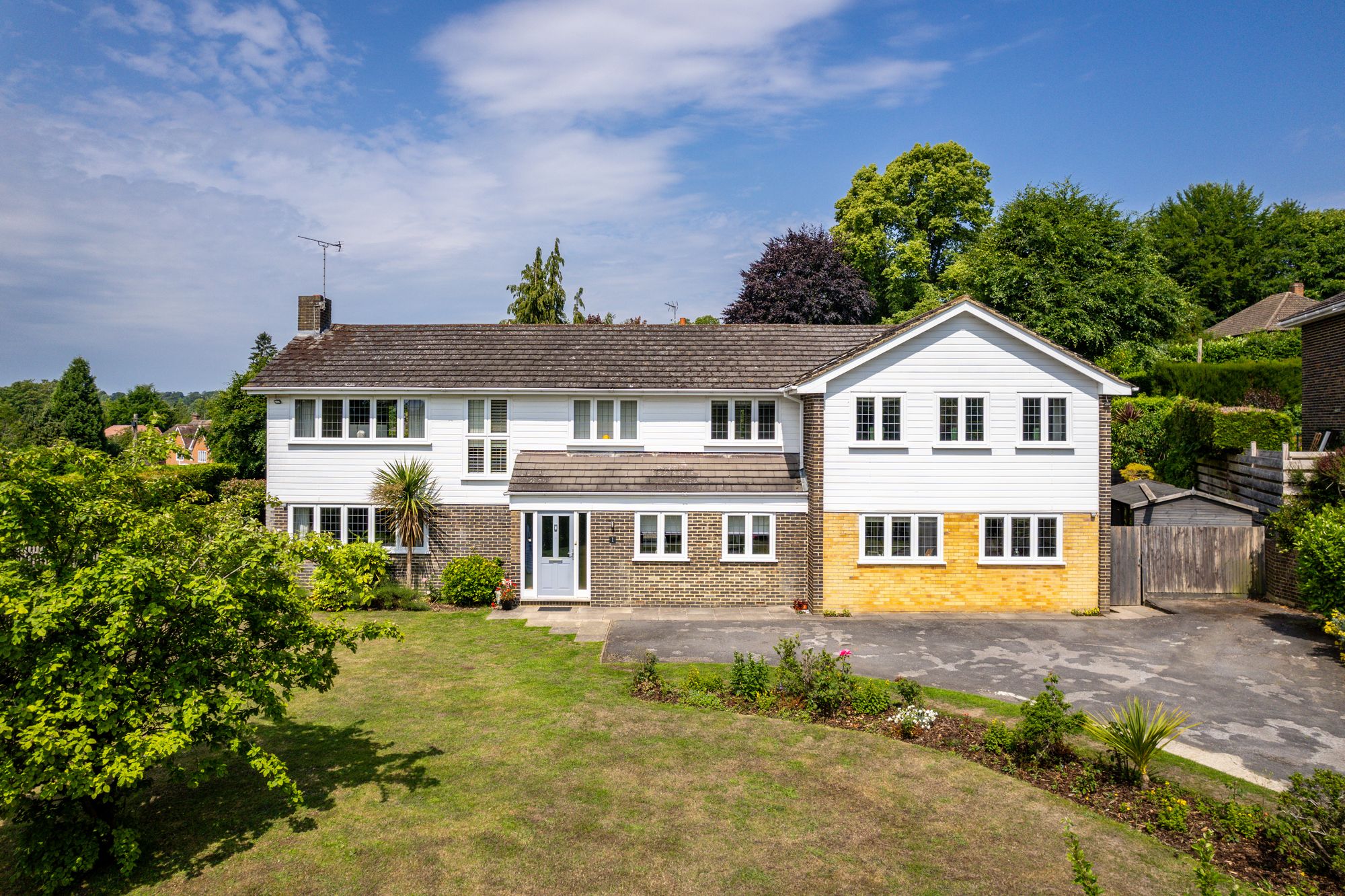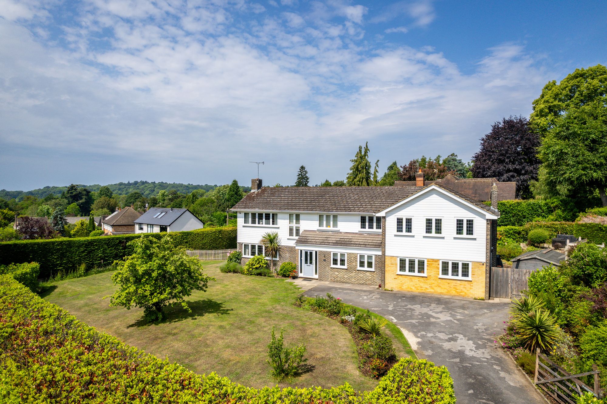 Luxurious five-bed detached house in private no-though road. Meticulously crafted interiors with spacious lounge, bespoke kitchen, office spaces, and garden. Convenient location in charming Oxted town near transport links and excellent schools.