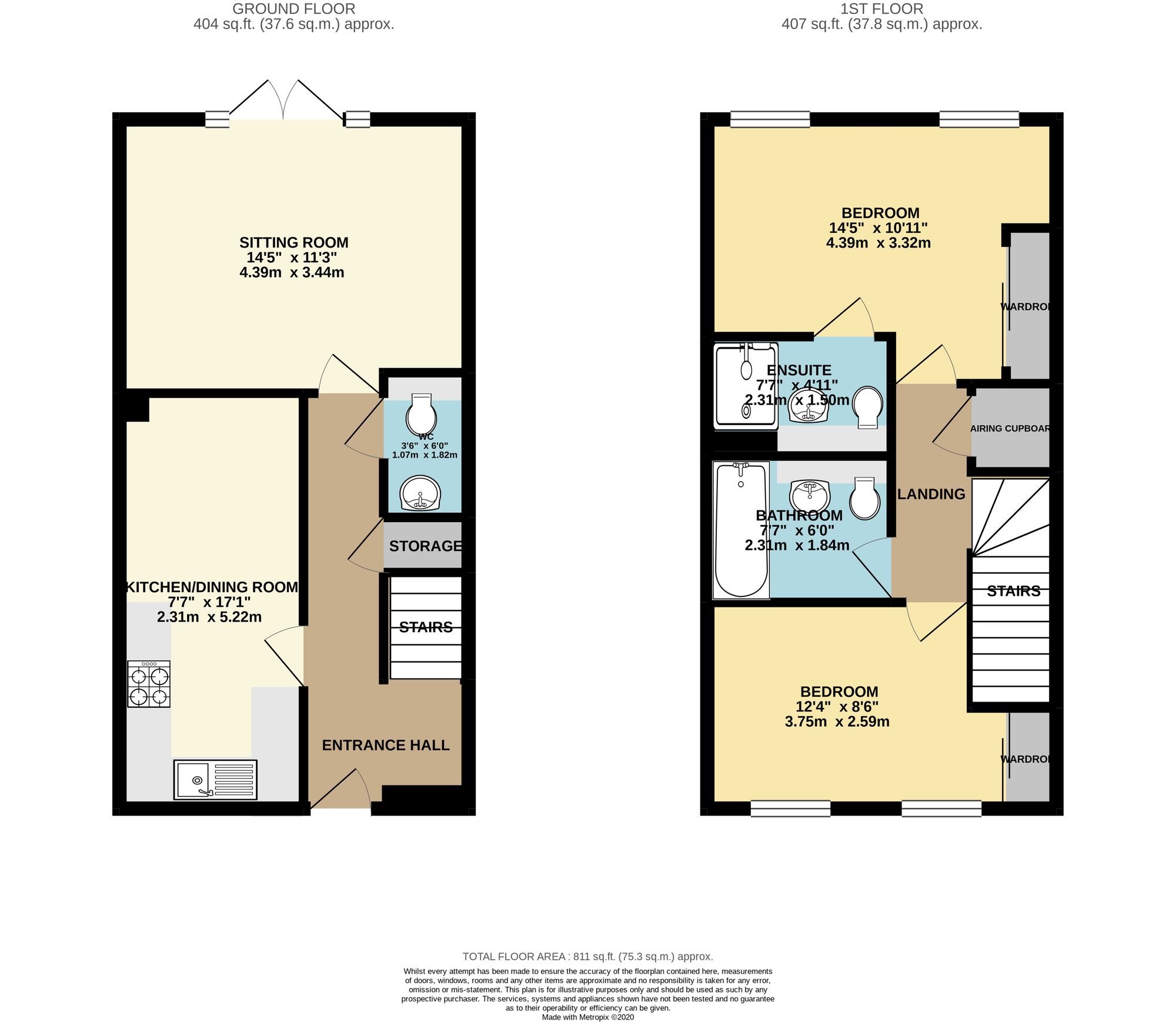 Rising to the first floor are two large bedrooms, the principal benefiting from an en suite, while the family bathroom serves the remaining bedroom.