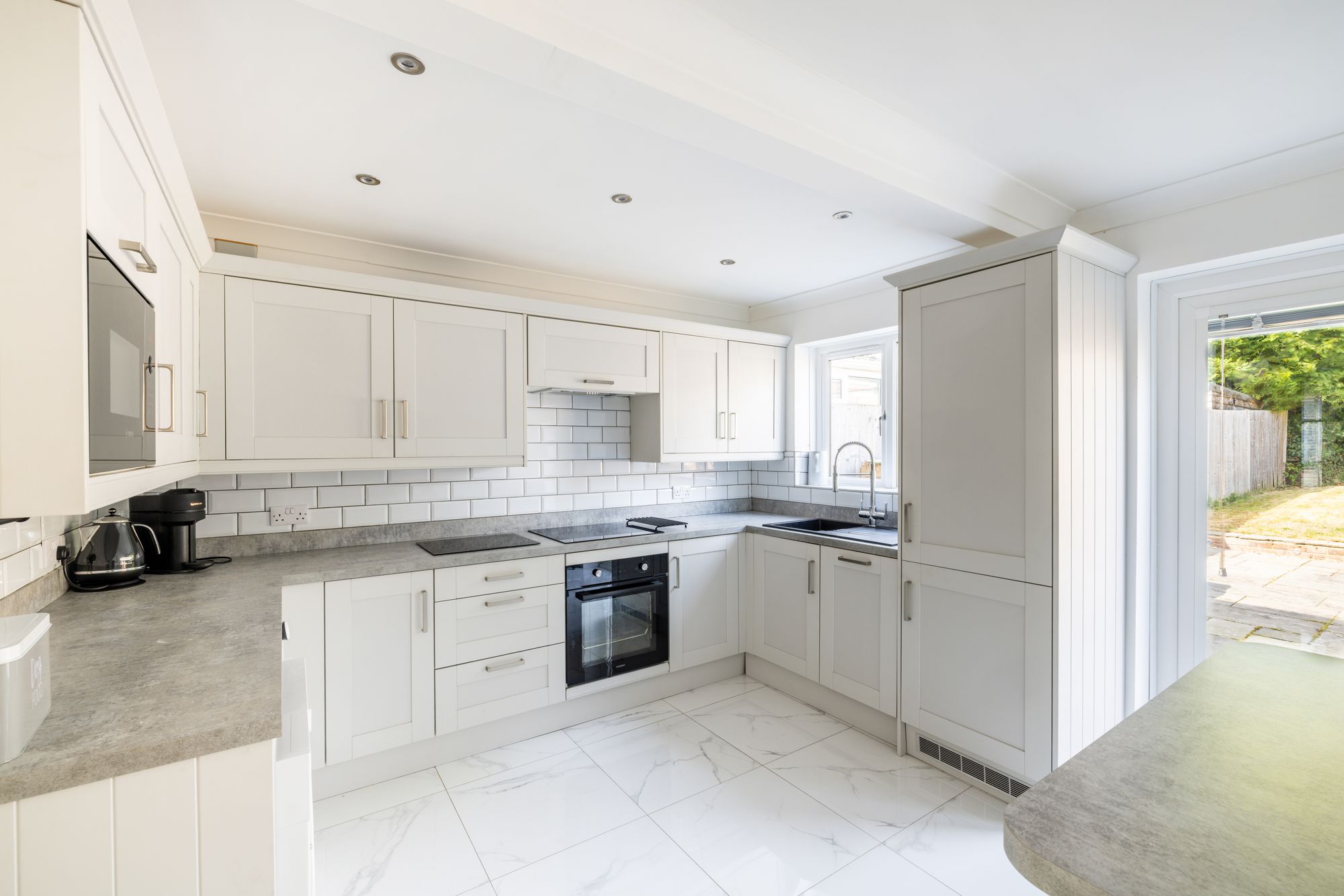 Nestled in a tranquil residential cul-de-sac, this beautifully presented three-bedroom family home offers the perfect blend of comfort and modern convenience. The bright and airy living room welcomes you with its inviting and warm ambience, leading seamlessly to the modernised kitchen/dining room with sleek worktops, cabinetry and built-in appliances, ideal for family meals and gatherings. The property boasts three generously proportioned double bedrooms all equipped with built-in storage, along with a newly fitted bathroom and a convenient downstairs cloakroom for added practicality.