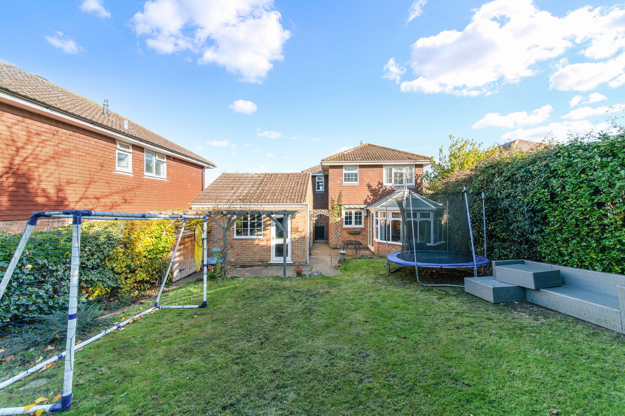 Venture outdoors to discover the south-facing rear garden and patio, offering a serene retreat for alfresco dining and leisurely afternoons in the sun. The generously proportioned outdoor space is ideal for gardening enthusiasts or families seeking a safe play area for children and pets. To accommodate vehicles and storage needs, a double garage and driveway for 2 cars provide ample space. Perfectly positioned, this property is just a short stroll away from the village conveniently accessed by a footpath just a stones throw from the house, providing easy reach to the primary school, pubs and mainline station, ensuring convenience and connectivity for daily necessities and commuting.