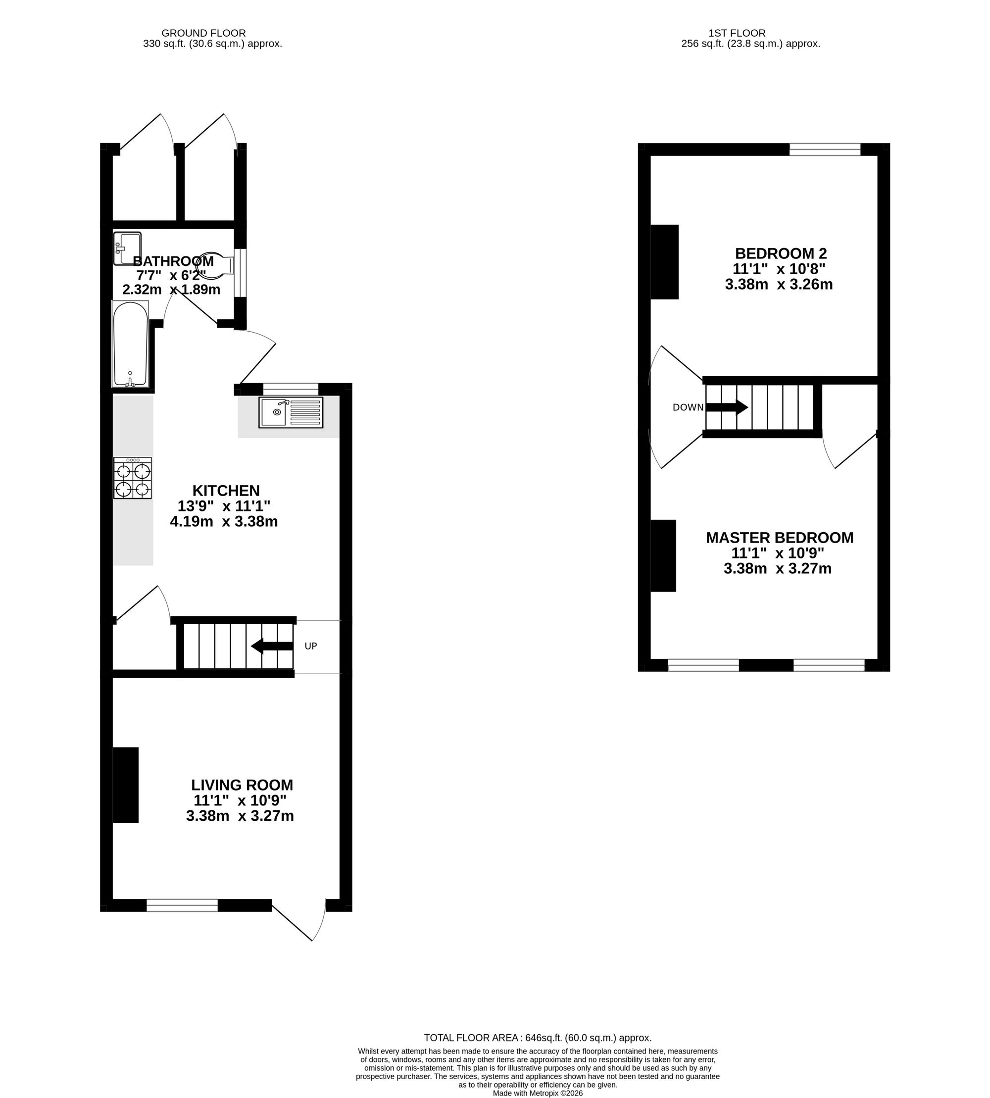 Upstairs, the property boasts two generously sized double bedrooms, both offering excellent proportions and natural light.
