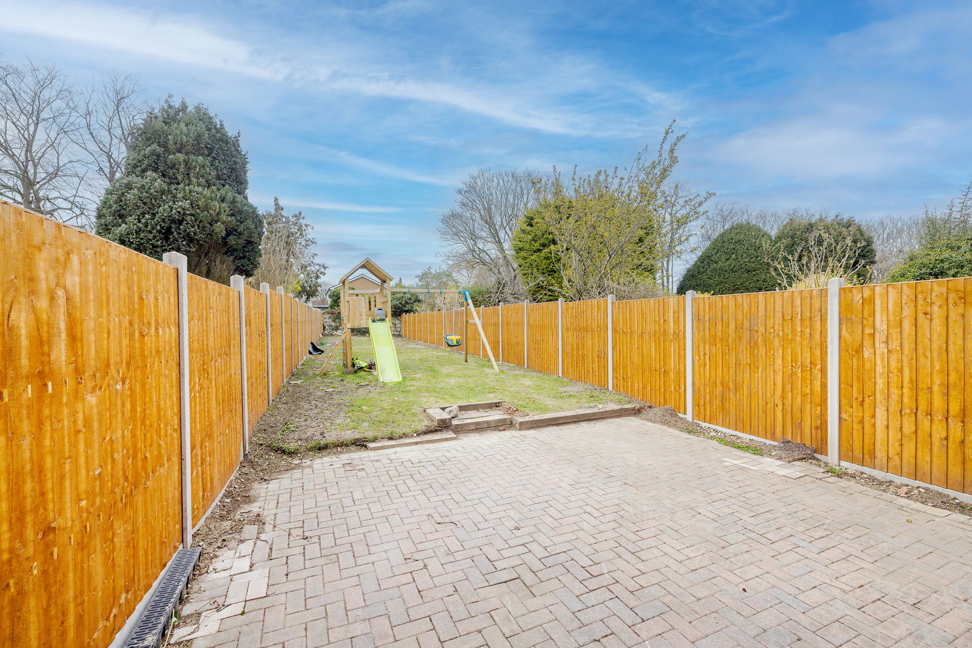 Externally, the property offers a large, level rear garden with a patio area perfect for outdoor dining, with the remainder laid to lawn. To the front, there is driveway parking for two vehicles.