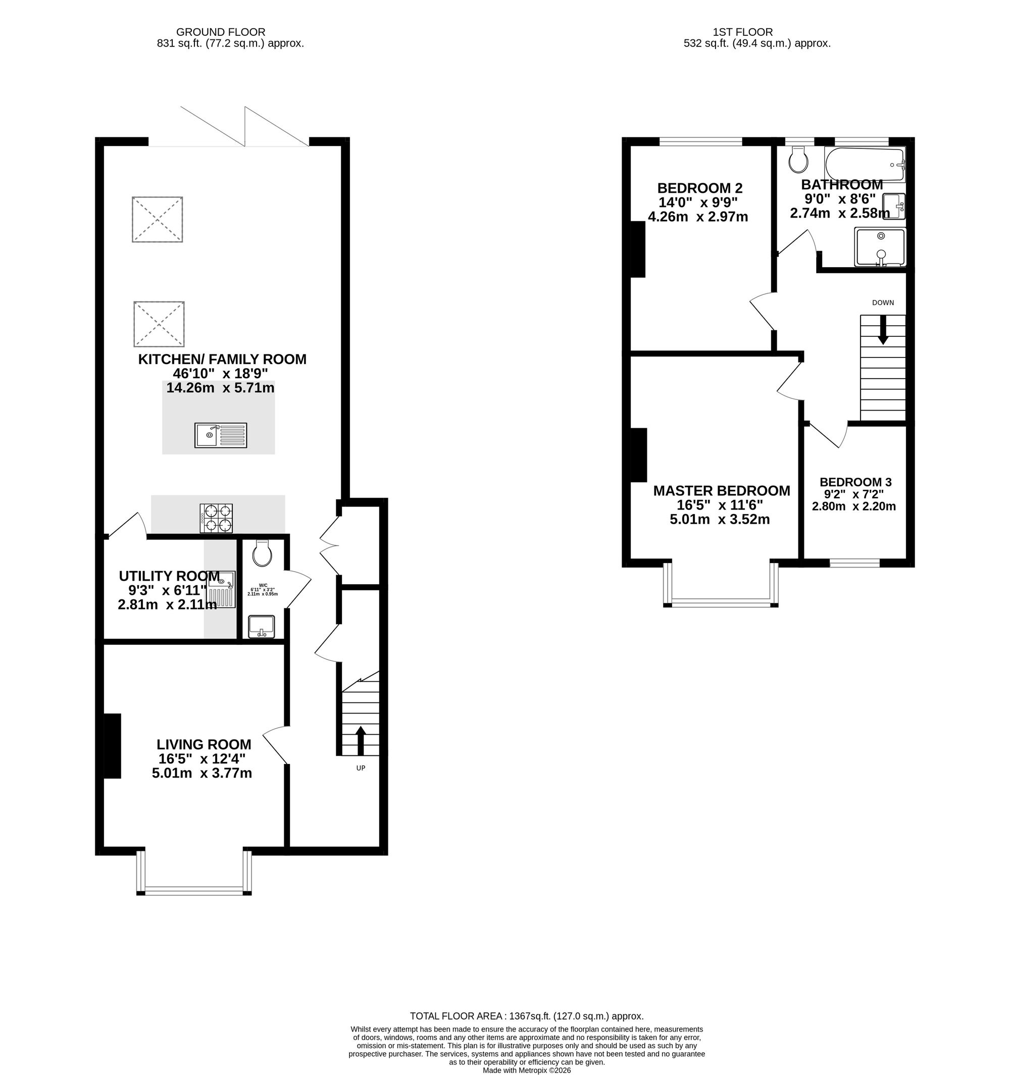 Further benefits on the ground floor include a useful utility room, a downstairs W/C, and excellent built in storage.