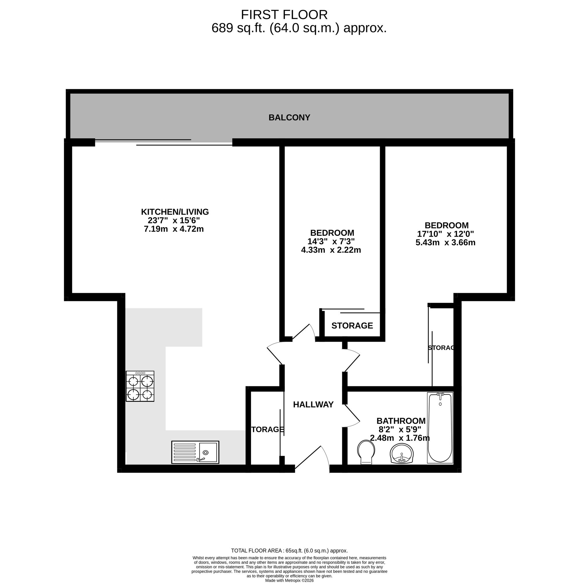 Constructed in 2021, this spacious two bedroom apartment is offered to the market in excellent decorative order, boasting a high specification throughout. Arranged over 689 sq. ft., the property benefits from an open-plan living space and a range of contemporary features, including underfloor heating throughout with individual room controls, a video entry system, and additional built-in storage within the entrance hall.