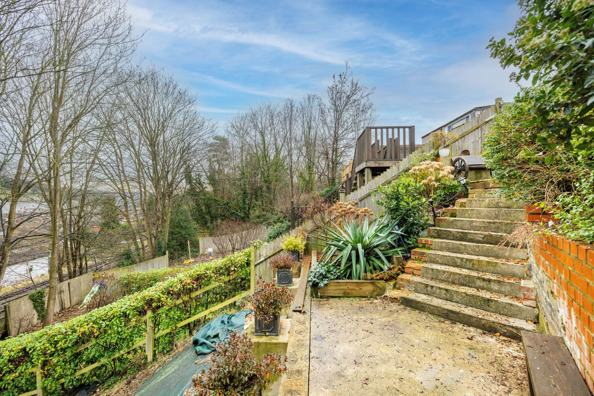Outside, the property boasts a beautifully landscaped, tiered rear garden, offering a pleasant and private outdoor space ideal for dining, entertaining, or relaxing.