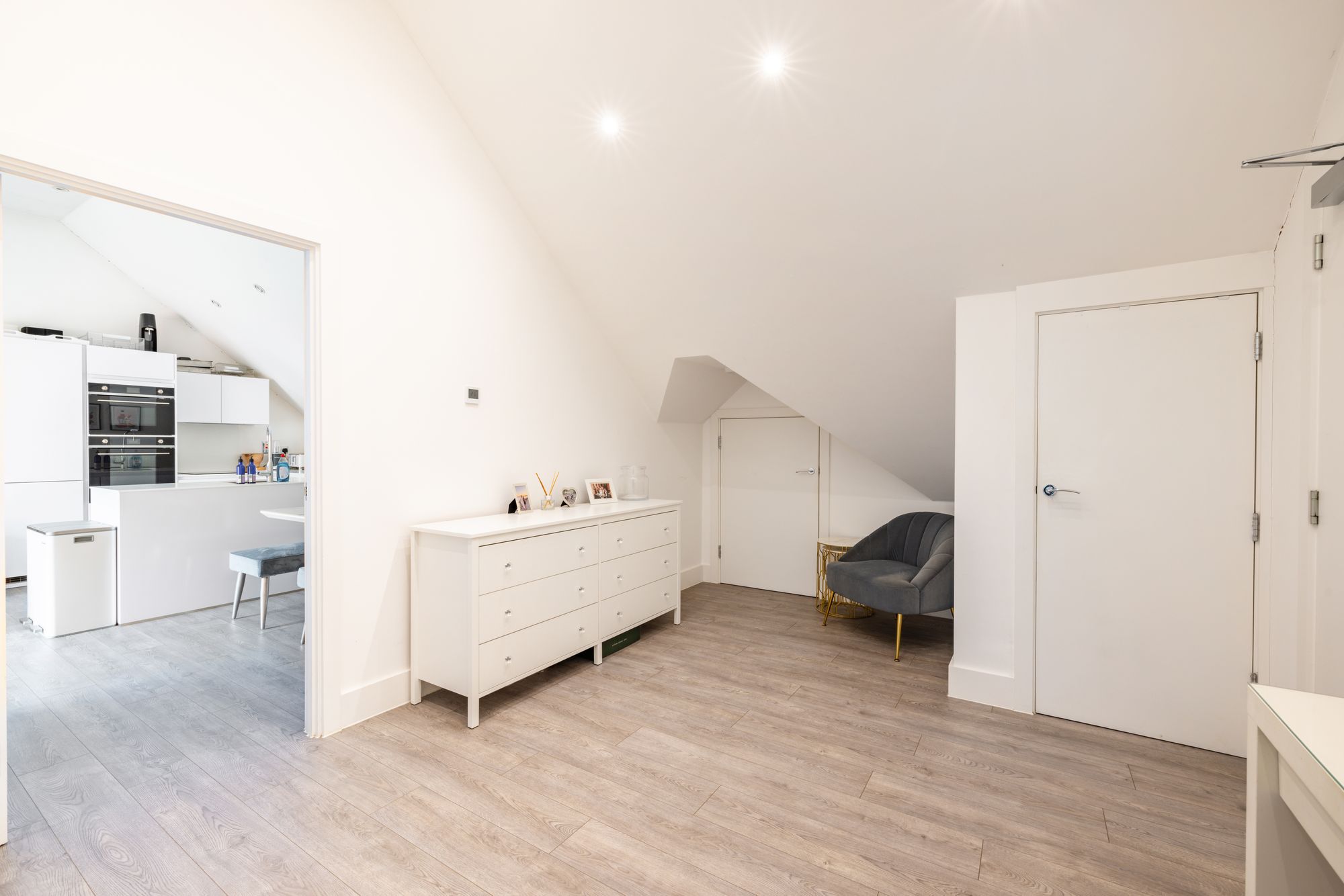 The accommodation briefly comprises, spacious entrance hall with eaves storage, expansive master bedroom with walk-in wardrobe, modern bathroom and an open-plan kitchen/ reception room with high-end specification and feature breakfast bar. The space offered is perfect for entertaining with high ceilings and an abundance of natural light.