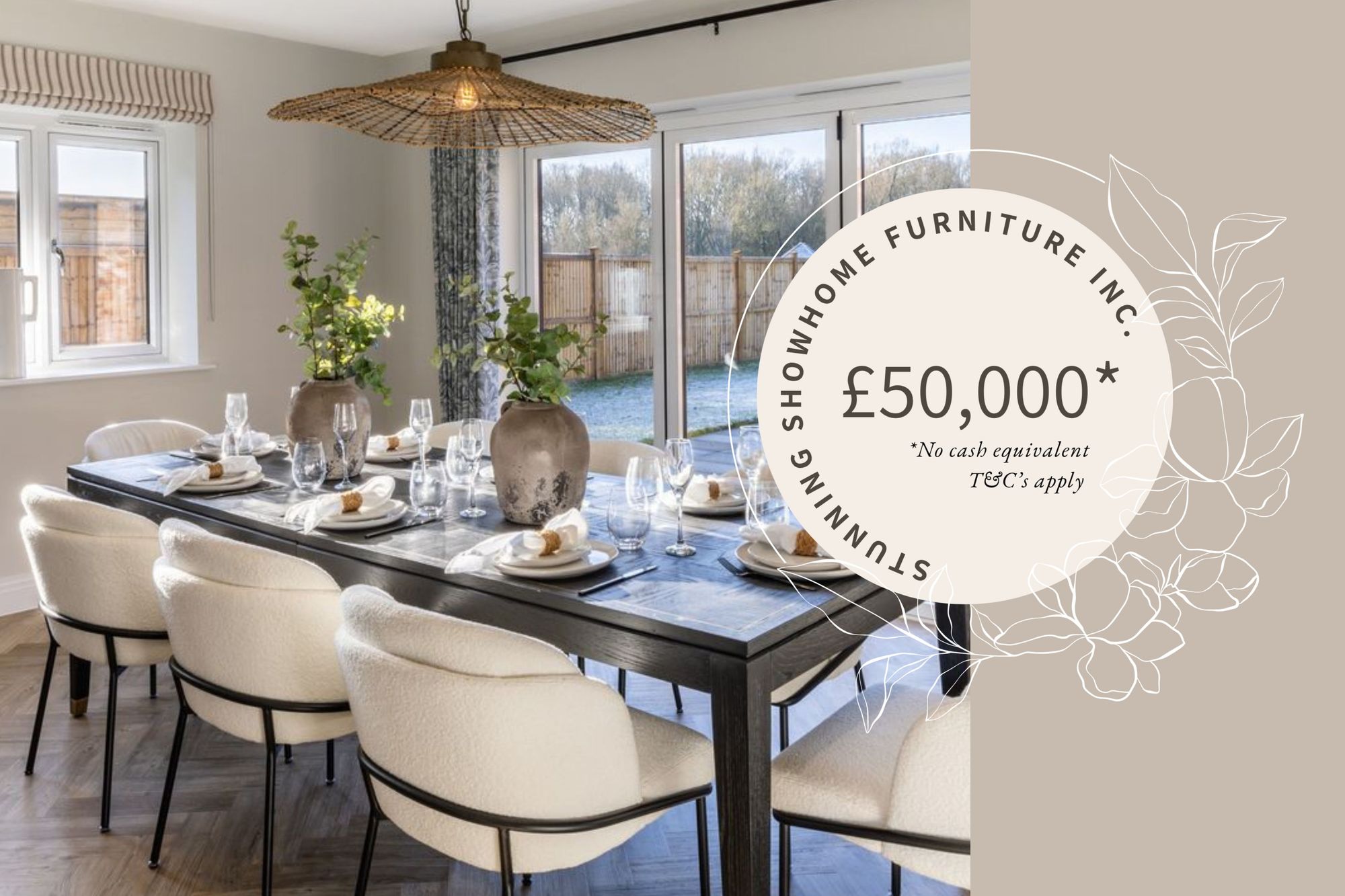 *Showhome furniture worth up to £50,000 included subject to offer. No cash equivalent. Full list of showhome furniture included available on request.