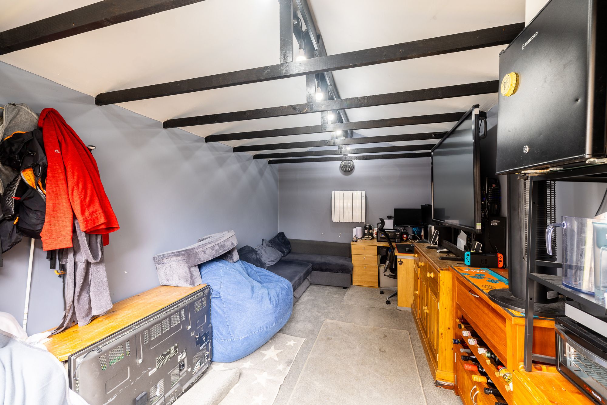 A particular highlight of this home is the large private rear garden, thoughtfully arranged to maximise outdoor living. There are two patio areas ideal for al fresco dining, along with a dedicated BBQ space complete with outdoor power sockets and a fully plumbed Belfast sink, making it perfect for entertaining. A stylish decking area with pergola provides a further seating space, also benefitting from outdoor sockets and a waste pipe pathway installed and ready for a potential hot tub. The remainder of the garden is laid to lawn, and there is convenient side access.