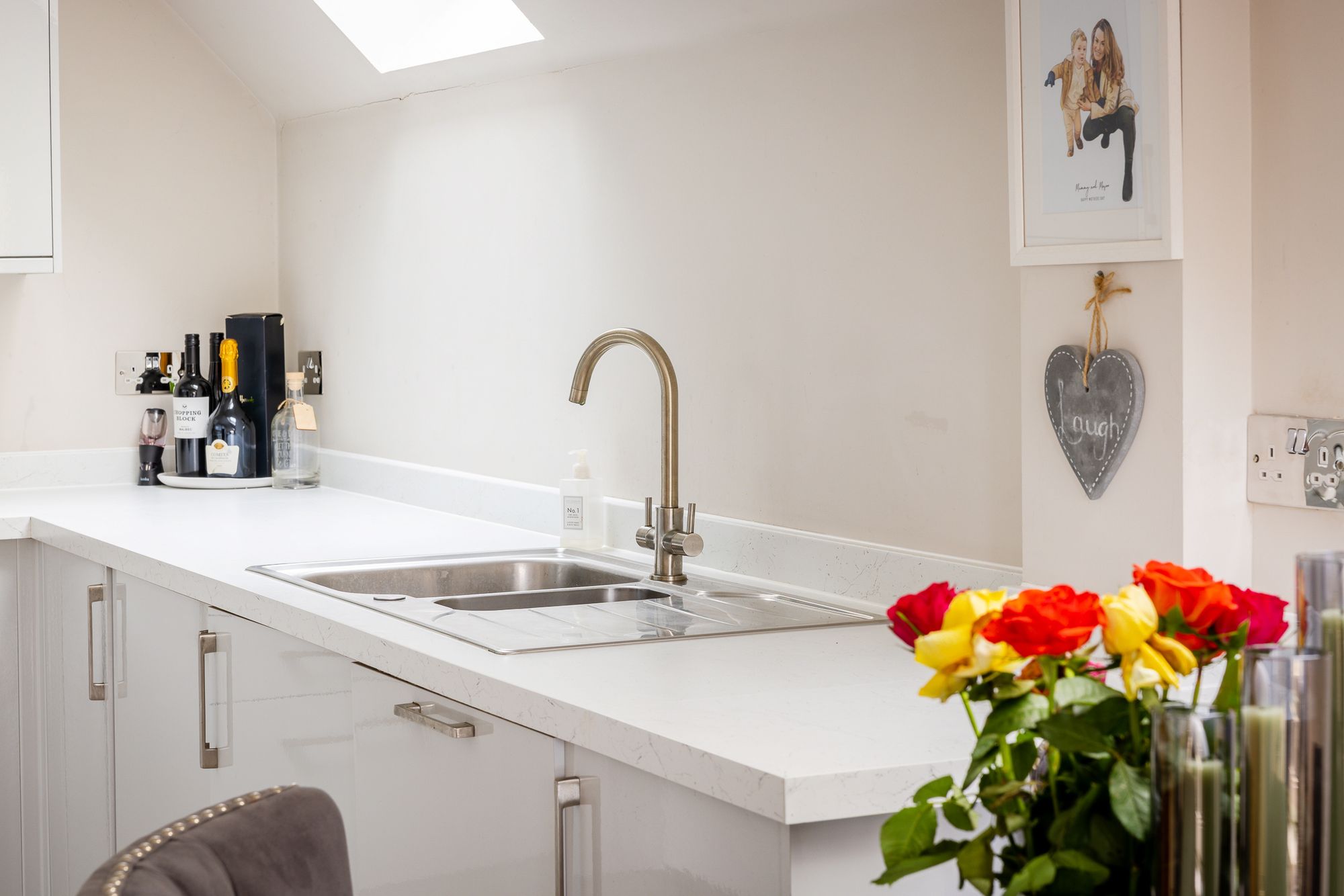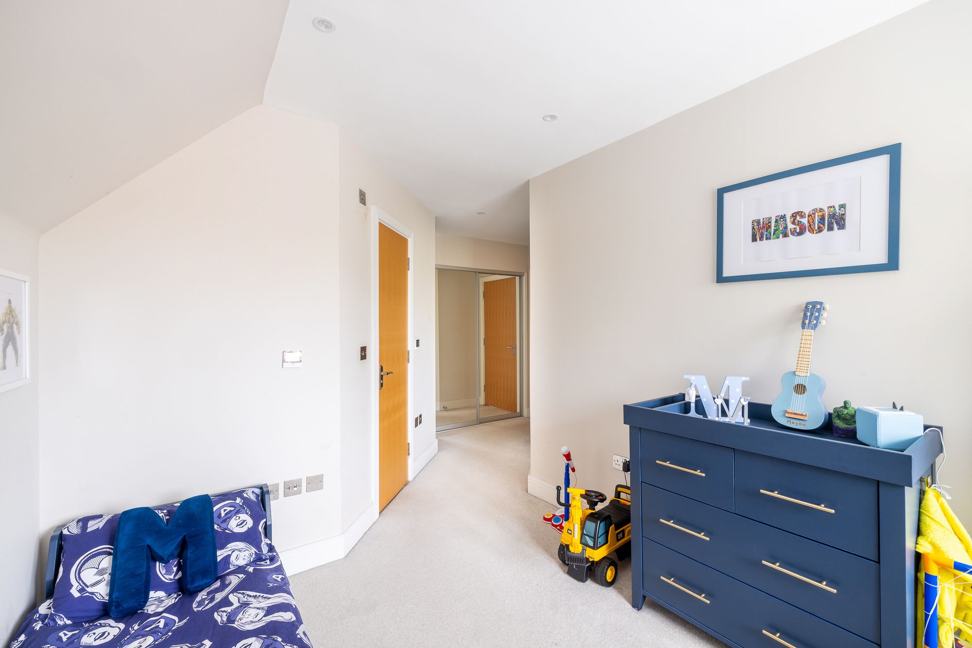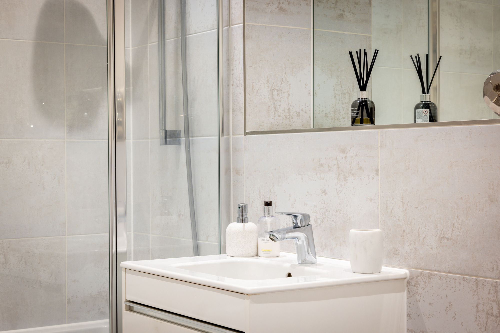 This impressive two-bedroom flat offers contemporary living within a sought-after modern development, presenting an ideal opportunity for professionals, couples, or small families. Situated on the top floor and accessed via a lift, the apartment extends over 800 square feet, ensuring a generous sense of space and light throughout. The property’s well-designed layout features a spacious open-plan living and dining area, seamlessly connected to a sleek, fully fitted kitchen that boasts integrated AEG appliances and ample storage. Both bedrooms are well-proportioned doubles, with the principal bedroom benefiting from a stylish en suite shower room, while the second bedroom is served by a modern family bathroom, finished with high-quality fixtures and fittings. Large windows and glazed doors allow natural light to flood the living spaces, creating a bright and inviting atmosphere. The private balcony, accessed from the main living area, provides a tranquil setting for relaxation or entertaining guests, with room for seating or a small table. Additional features include a secure allocated parking space (ideal for those commuting or requiring convenience), underfloor heating throughout, and double glazing throughout, ensuring comfort and energy efficiency year-round. The property is located within easy reach of local amenities, shops, and transport links, providing excellent connectivity to the surrounding area and beyond. The apartment has been finished to a high standard, with neutral décor that will appeal to a wide range of tastes and allows for personalisation. Whether you are looking for a low-maintenance home or a sound investment, this top floor flat combines modern design, practical features, and a desirable location. Early viewing is highly recommended to fully appreciate the space, quality, and lifestyle this exceptional property has to offer.