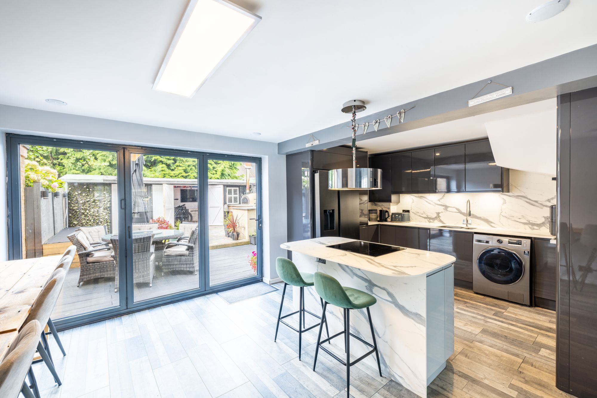 Heading outdoors, you will appreciate the low-maintenance rear garden and decking, ideal for al fresco dining and basking in the sunshine. Additionally, a charming summer house with power presents endless possibilities, from a work-from-home space to a cosy retreat for leisure and relaxation. Convenience is key with driveway parking, ensuring easy access for residents and visitors. Furthermore, the property’s prime location allows for a short walk to reputable schools and Three Bridges station, providing seamless connectivity to neighbouring towns and commuting into London.